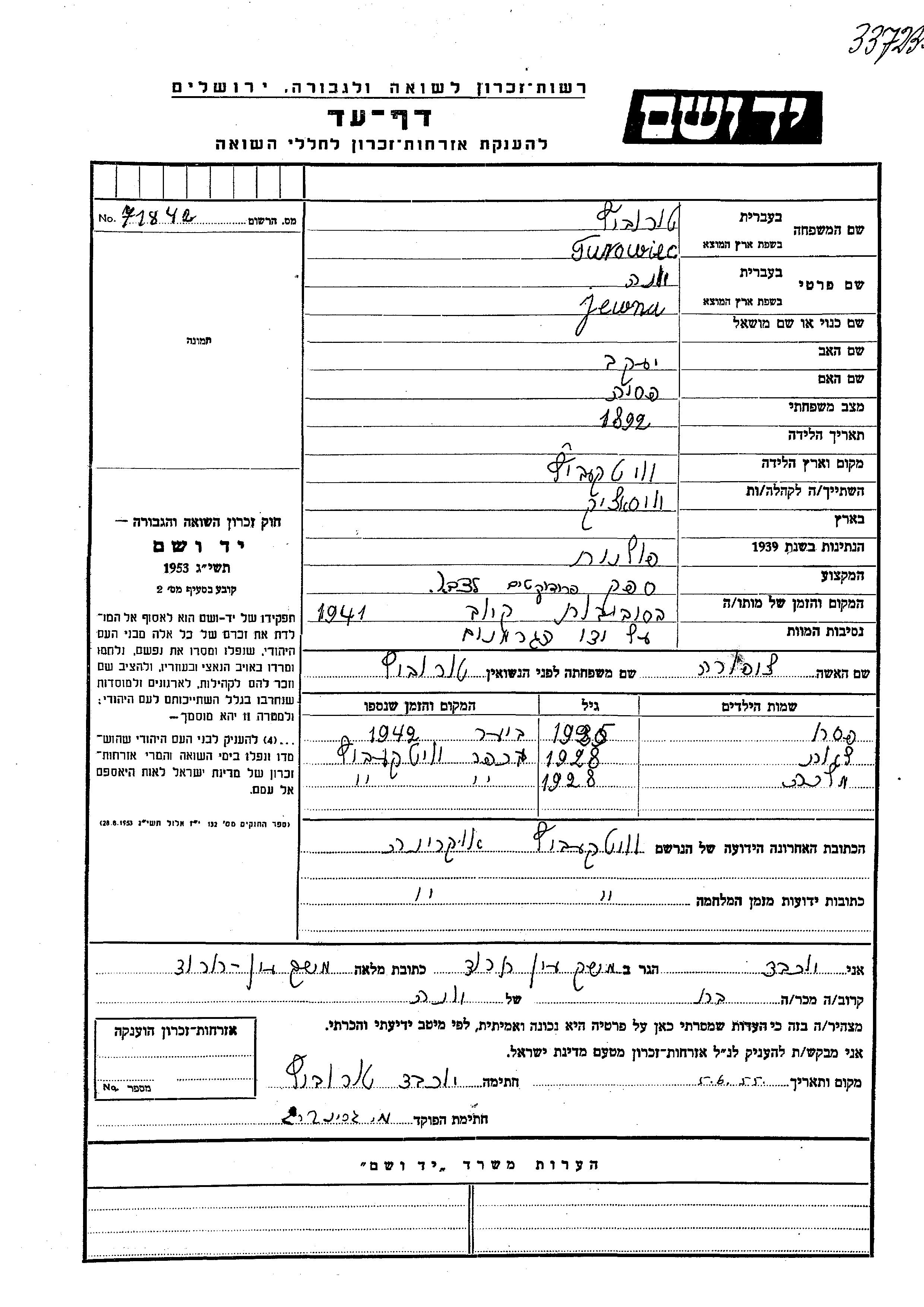 Yad Vashem - Pages of Testimony Names Memorial Collection