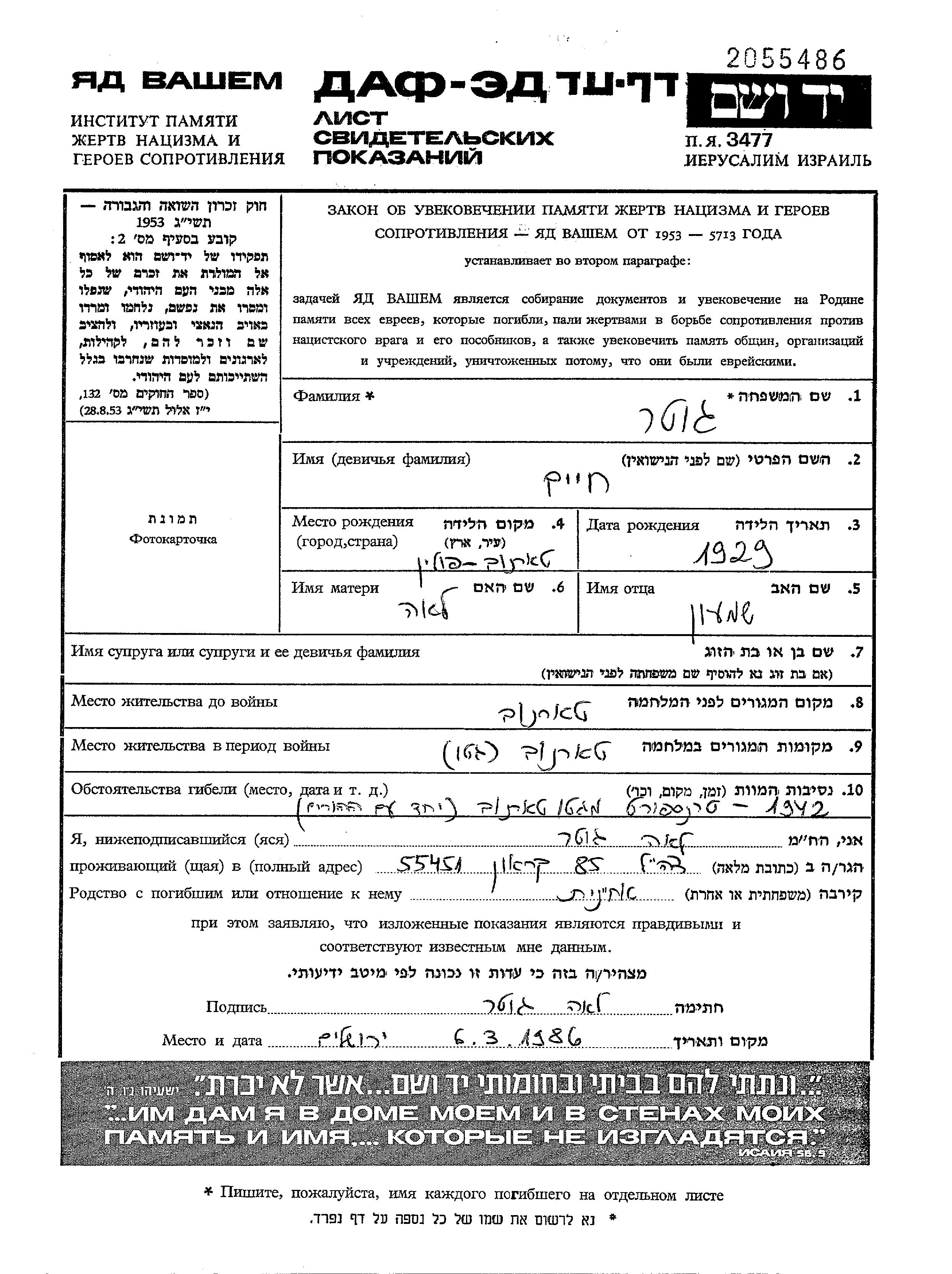 Yad Vashem - Pages of Testimony Names Memorial Collection