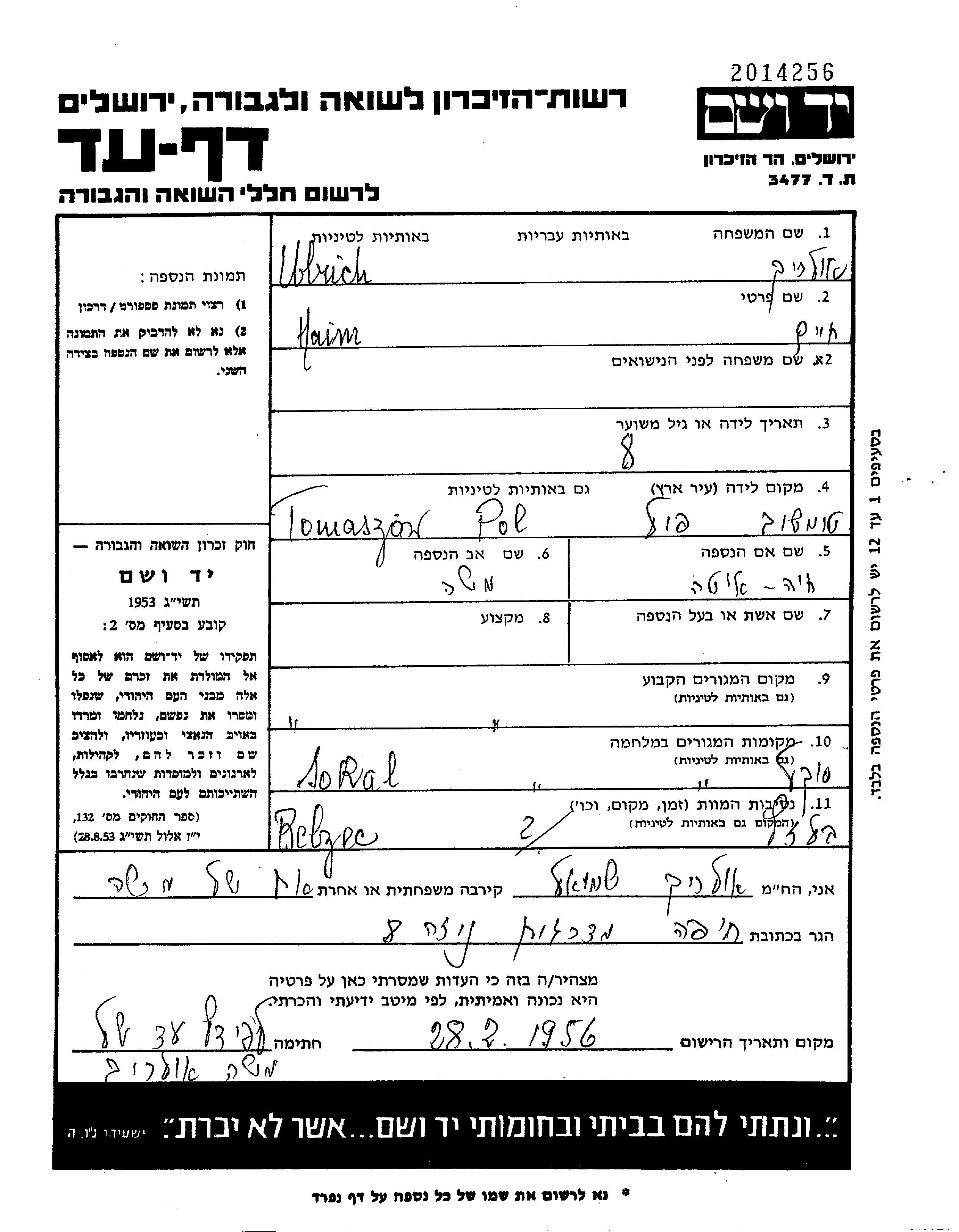 Yad Vashem - Pages of Testimony Names Memorial Collection