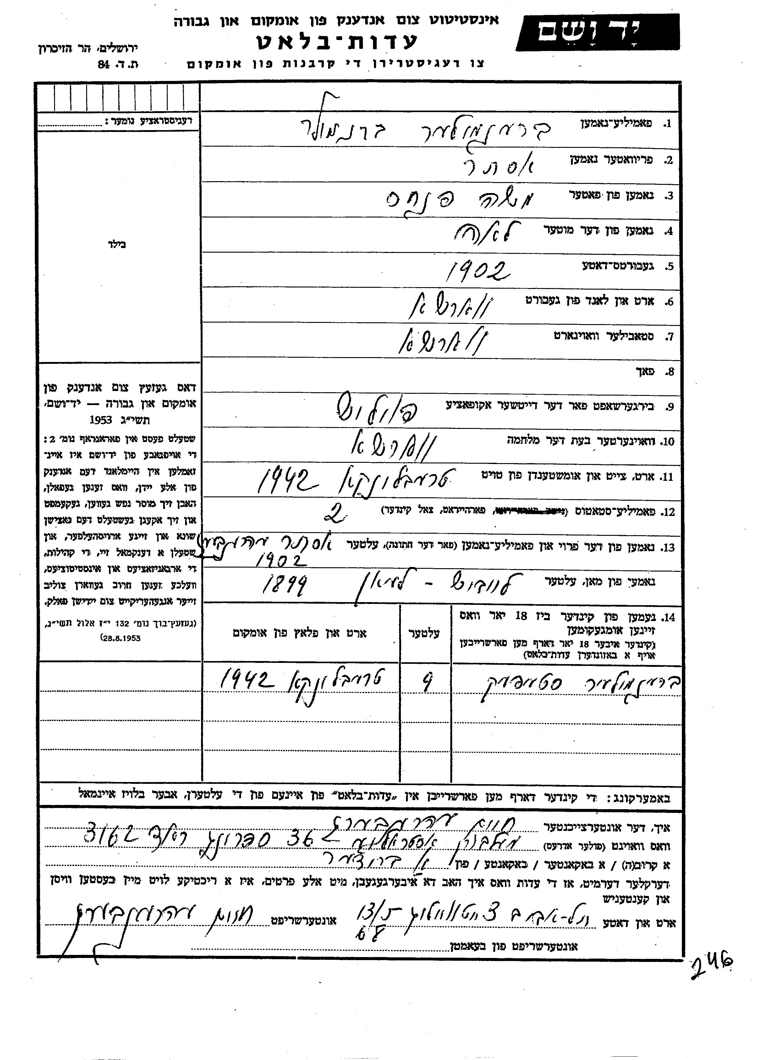 Brenmuler | סטעפעק | Warszawa, Pologne | Feuille de témoignage |
