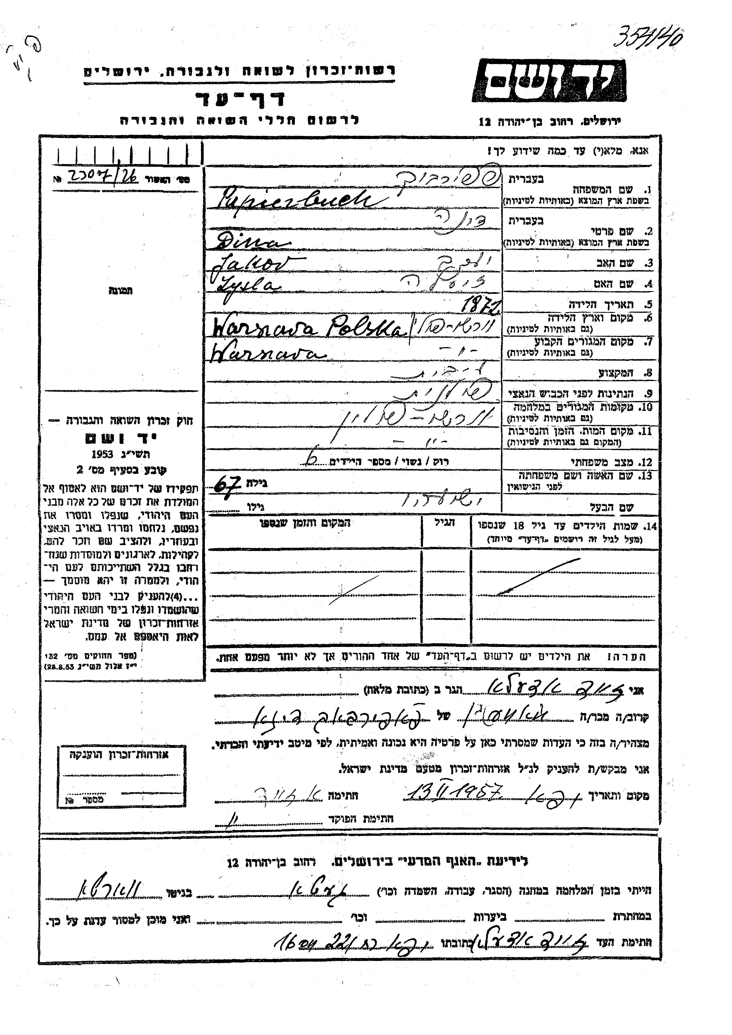 Papierbuch | Dina | Warsaw, Pologne | Feuille de témoignage |