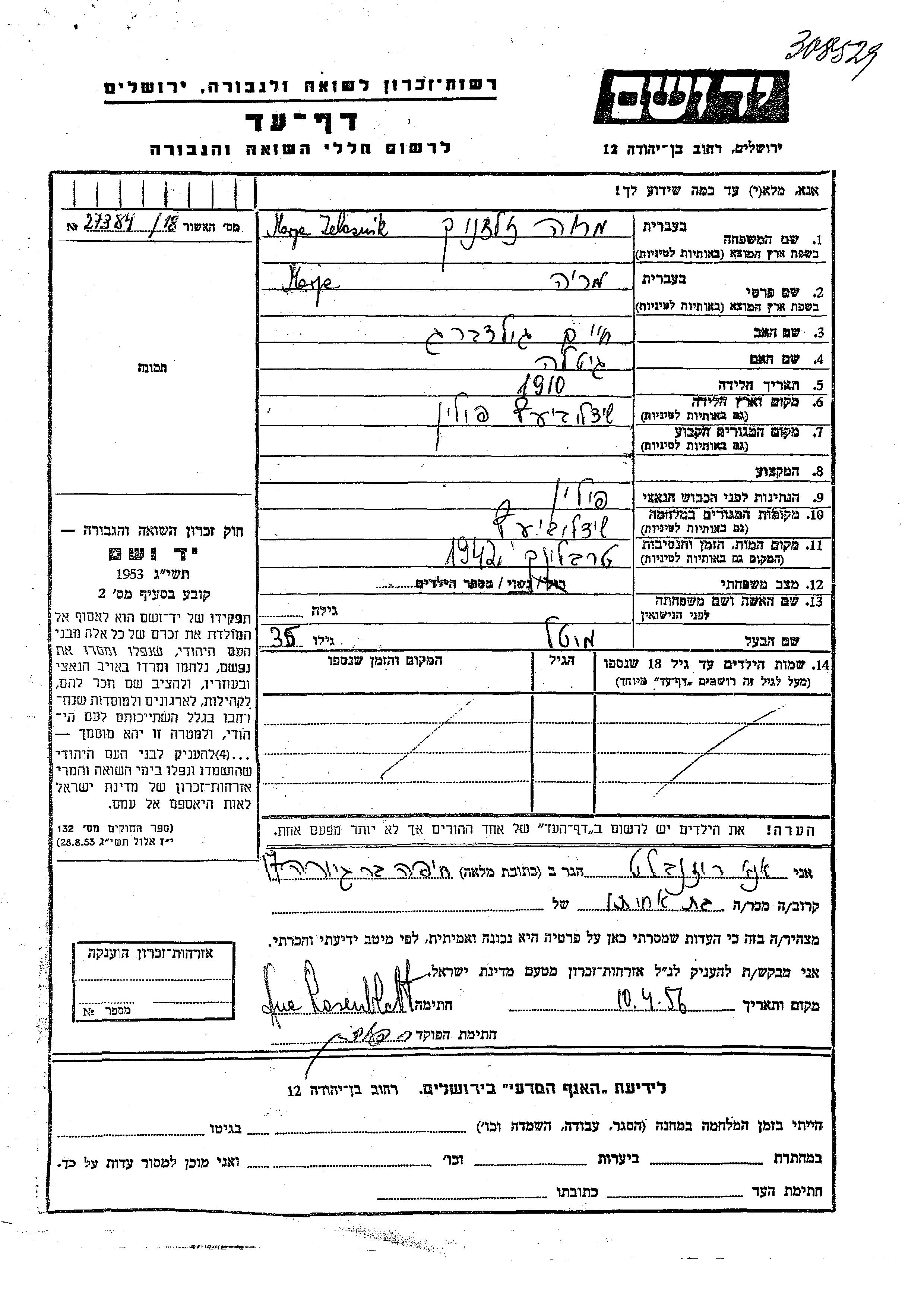 Yad Vashem - Pages of Testimony Names Memorial Collection