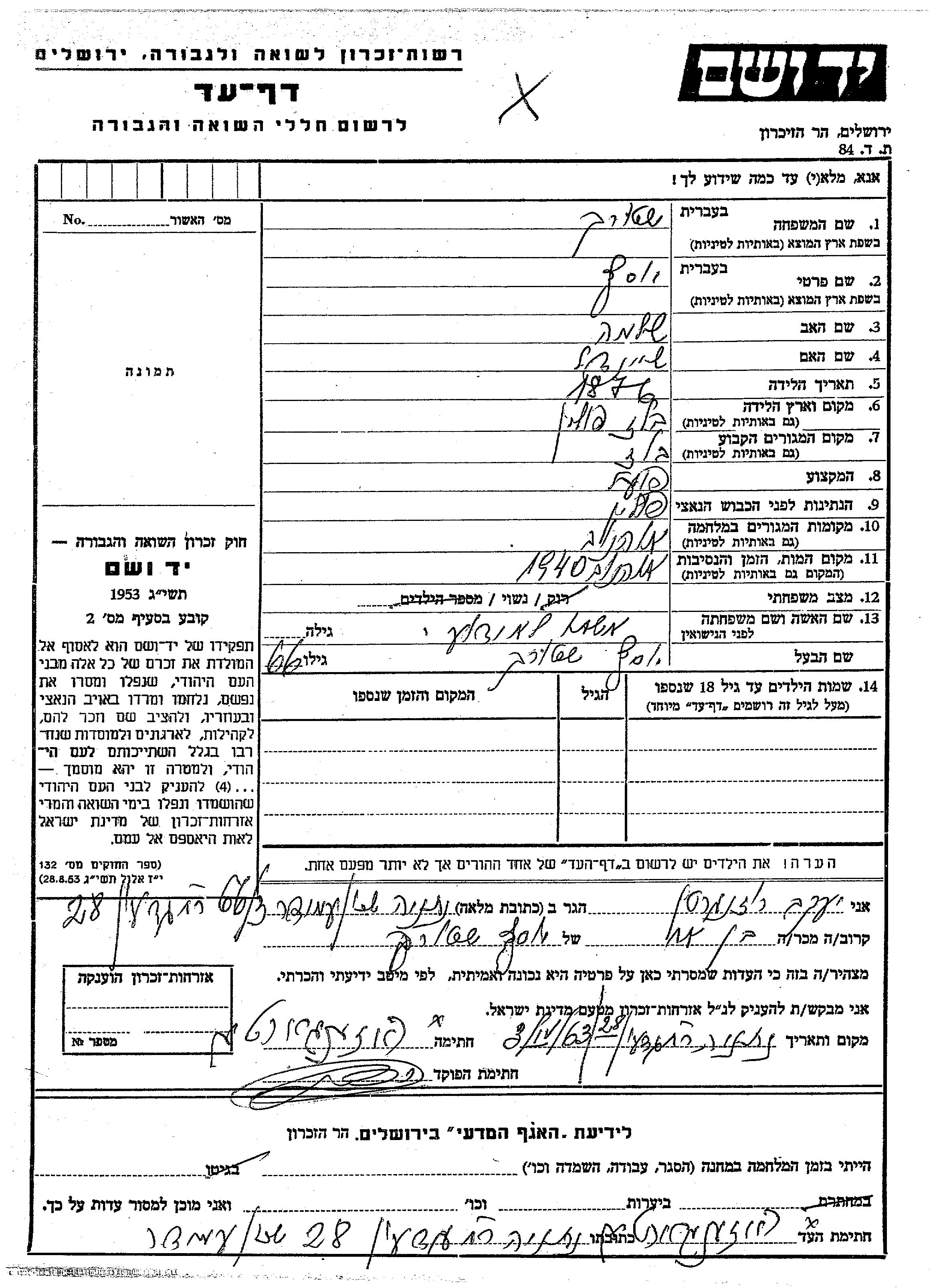 Yad Vashem - Pages of Testimony Names Memorial Collection