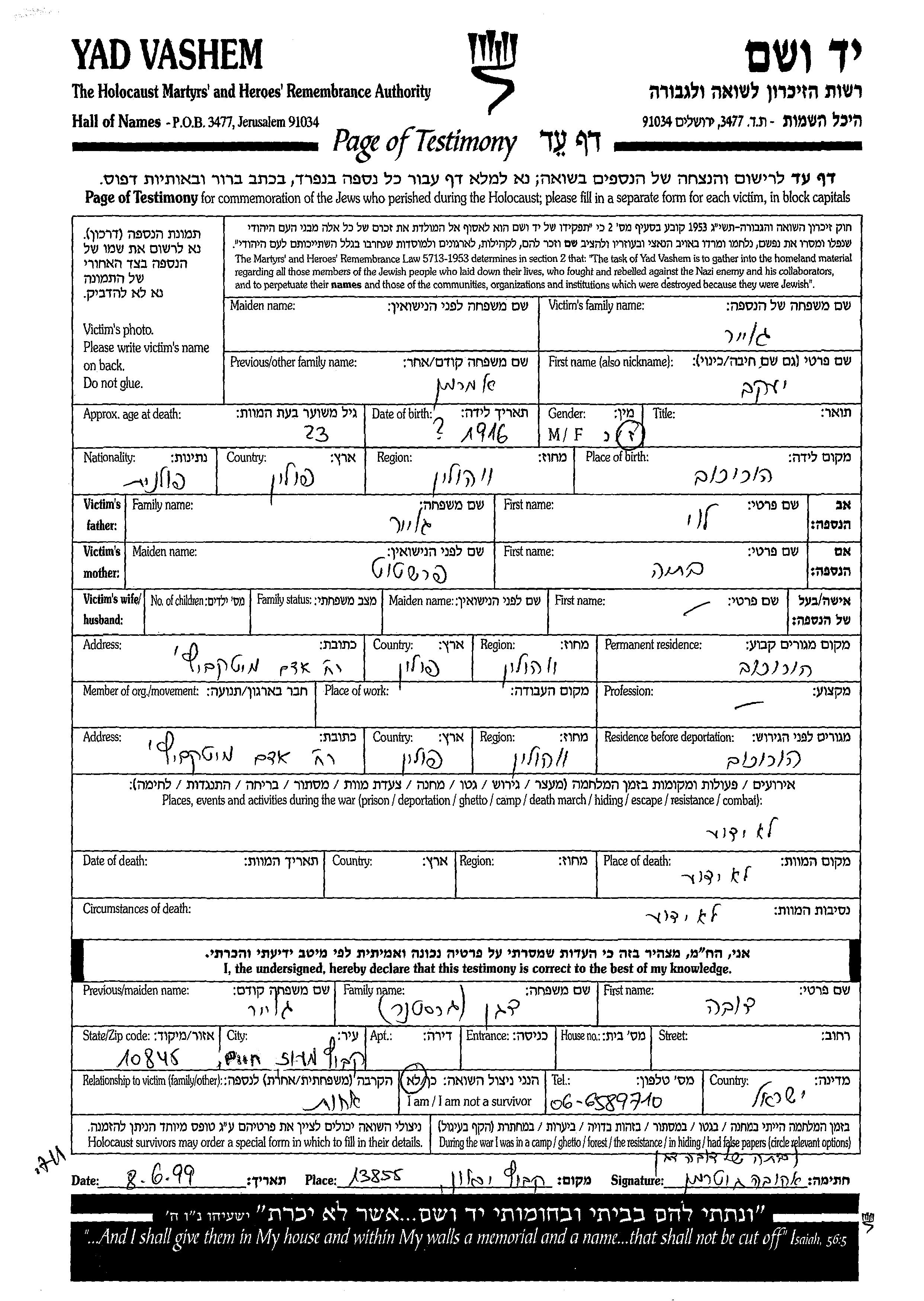 Yad Vashem - Pages of Testimony Names Memorial Collection