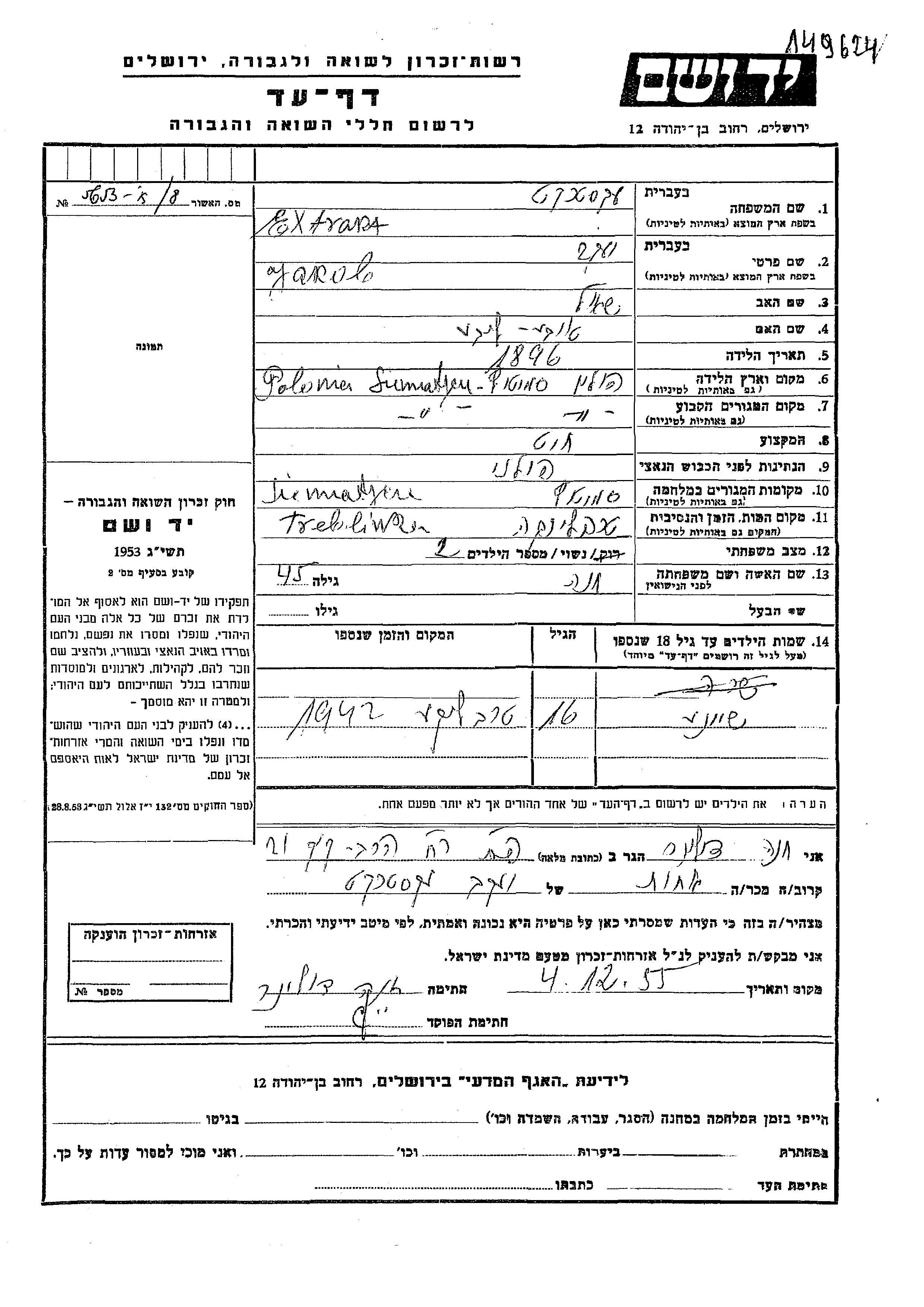 Extrakt | Jakob | 1904 | Siedlce, Pologne | Feuille de témoignage |