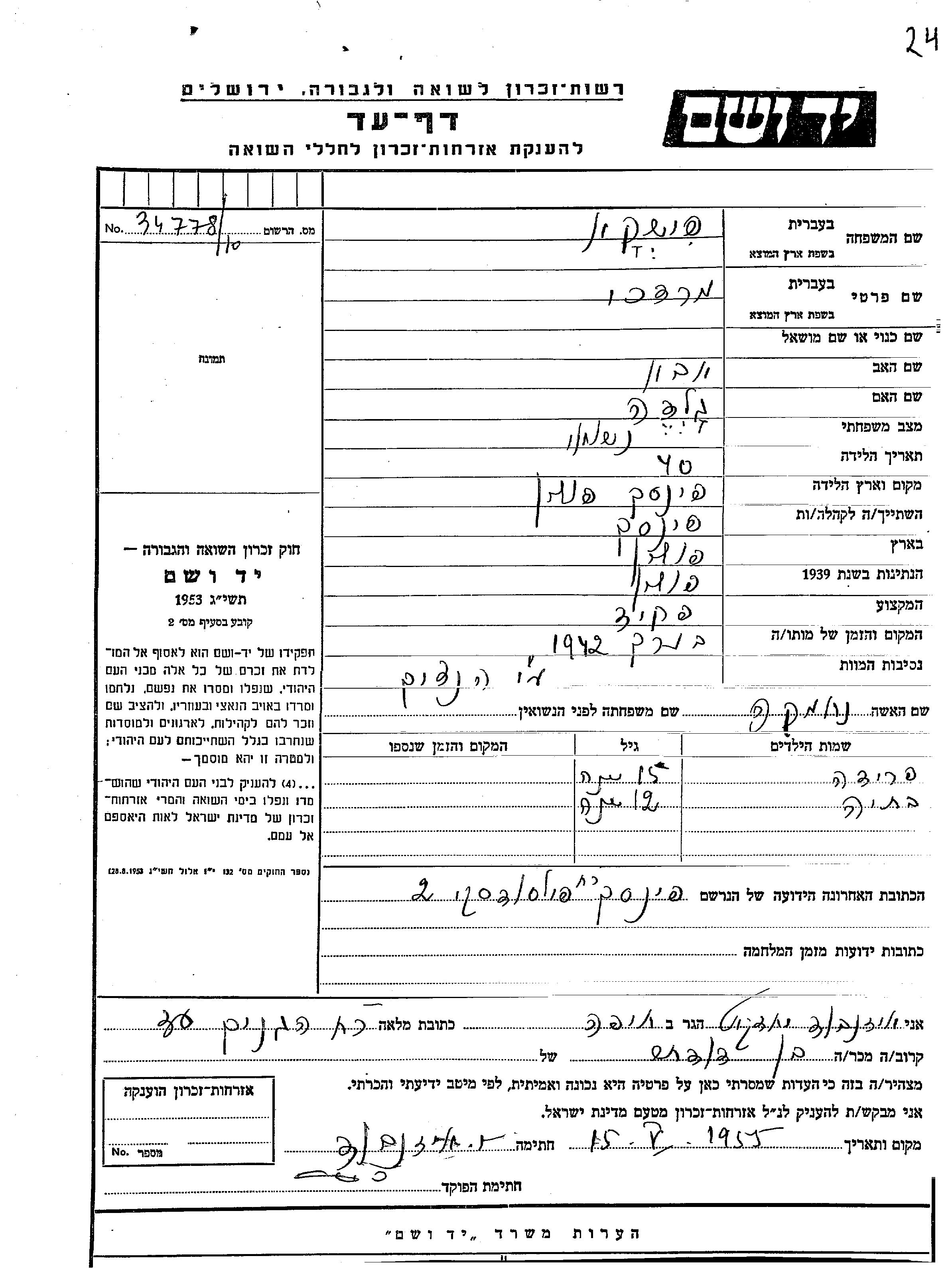 Yad Vashem - Pages of Testimony Names Memorial Collection