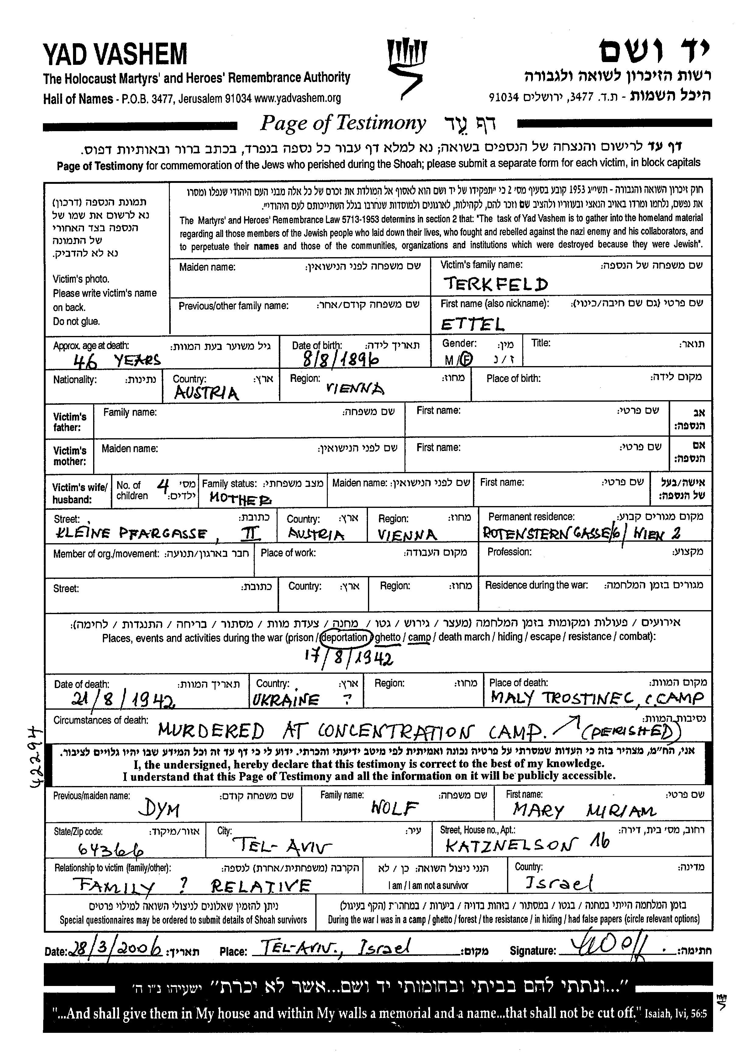 Yad Vashem - Pages of Testimony Names Memorial Collection