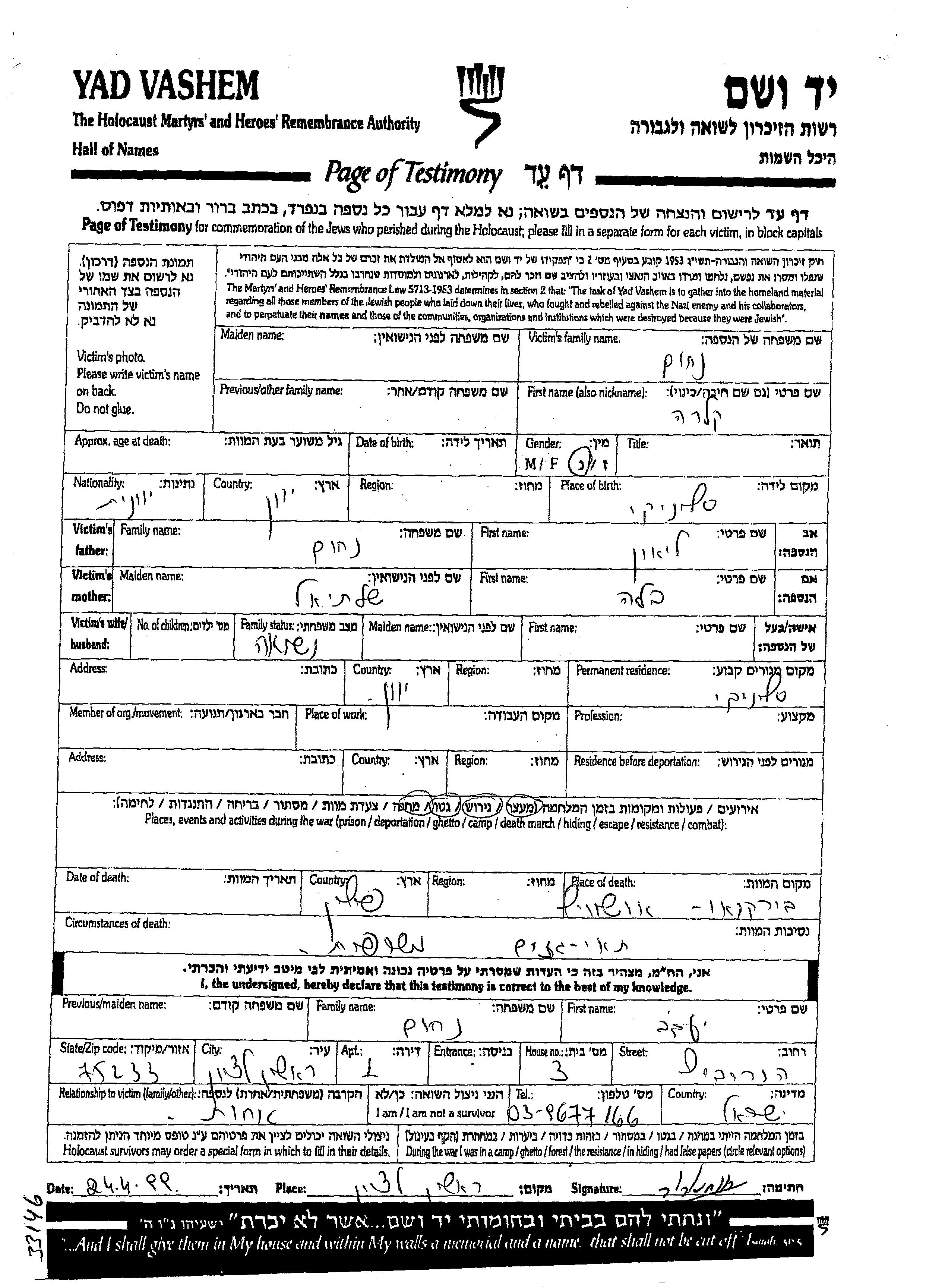 Yad Vashem - Pages of Testimony Names Memorial Collection