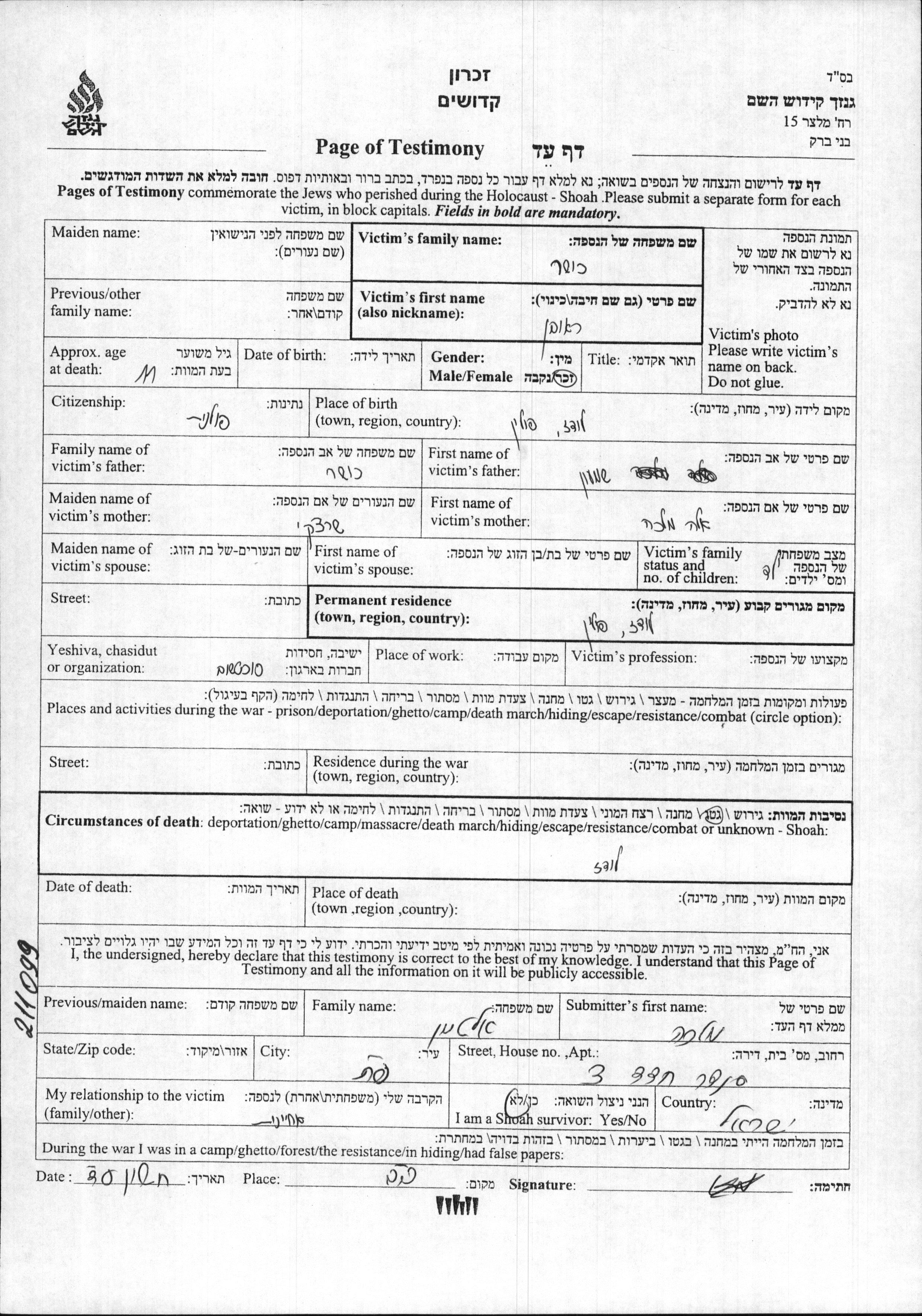 Yad Vashem - Pages of Testimony Names Memorial Collection