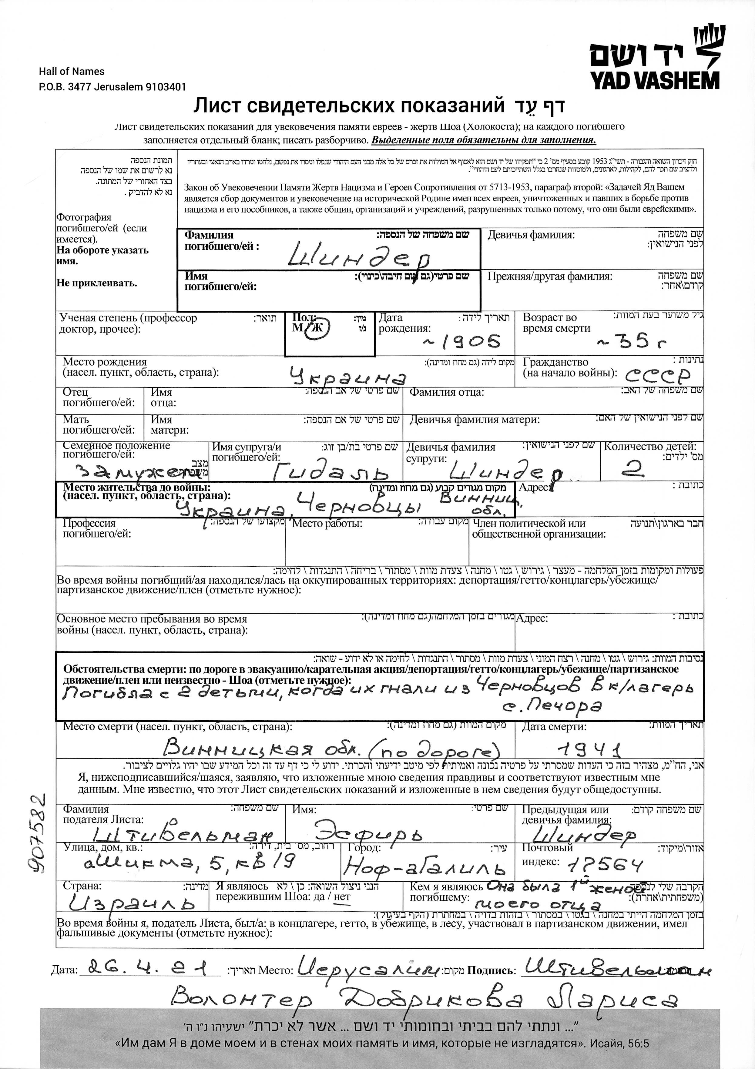 Yad Vashem - Pages of Testimony Names Memorial Collection