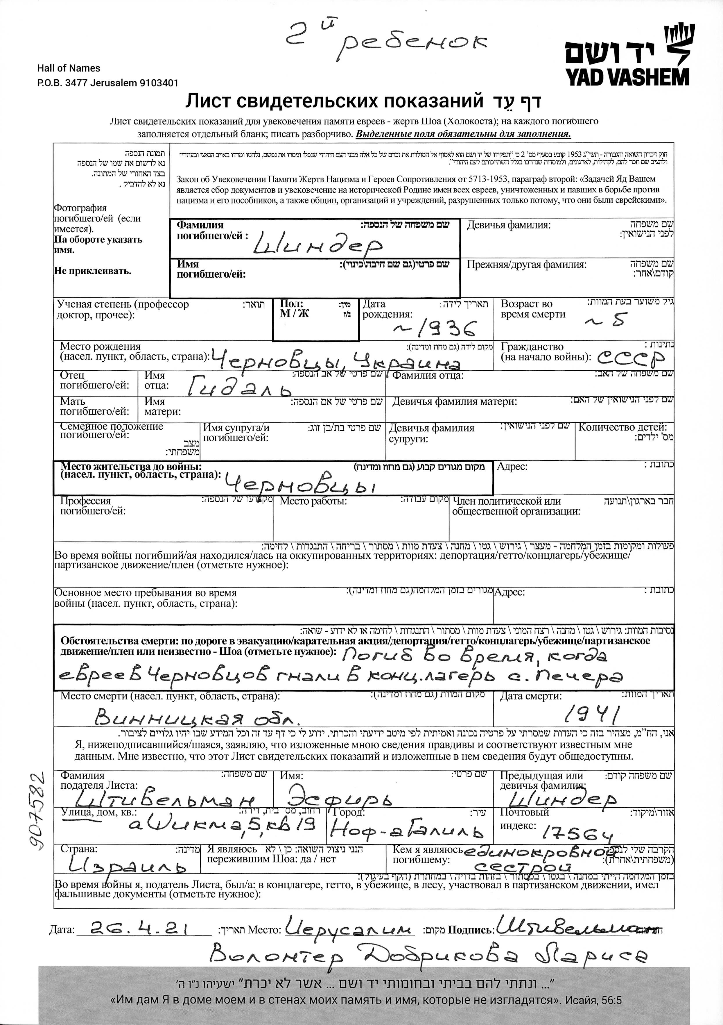 Yad Vashem - Pages of Testimony Names Memorial Collection