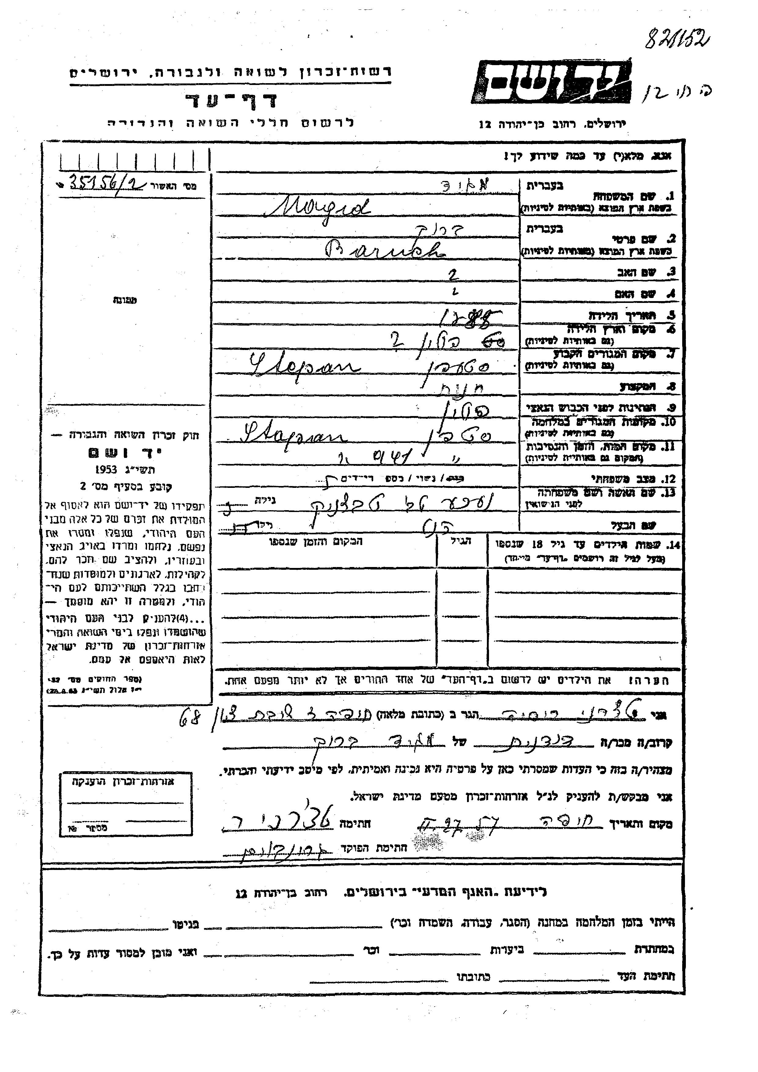 Baruch a été assassiné pendant la Shoah. Lieu de la mort: Stepań, Pologne en 1941.