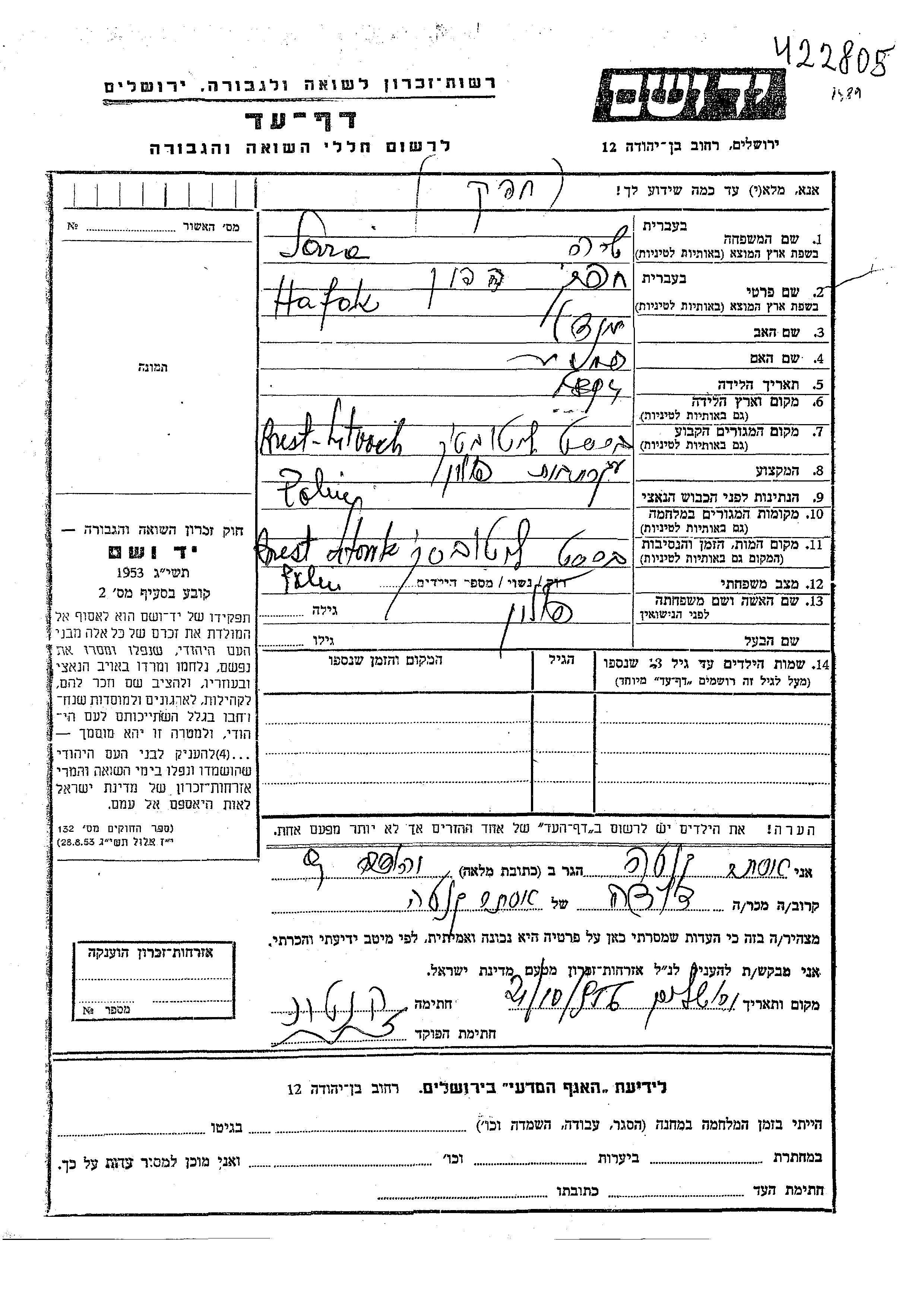 Recherche par lieu de résidence permanente avant la Shoah, ville, village, département, région ou pays.