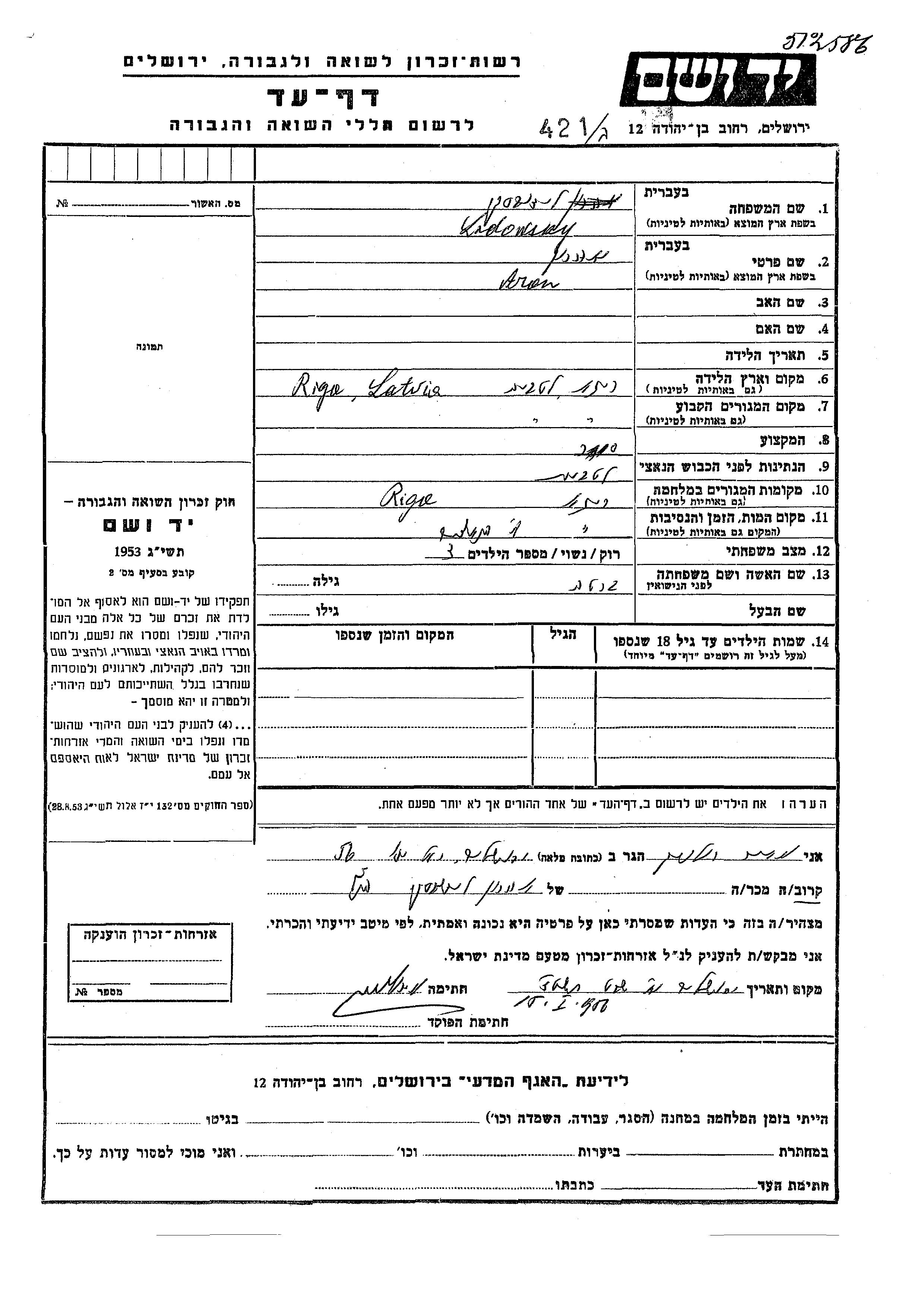 Yad Vashem - Pages of Testimony Names Memorial Collection