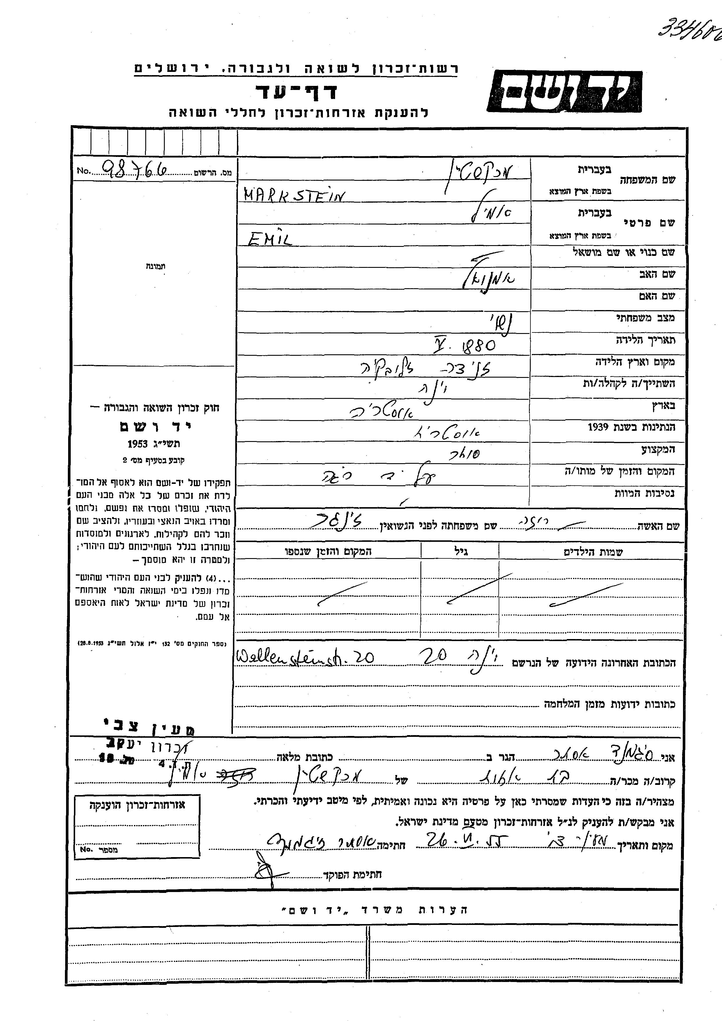 Emil Markstein est né à Zenica, Yugoslavie en 1880, fils de Emanuel. Il était Commerçant/e et Mariée à Roza née Zinger.