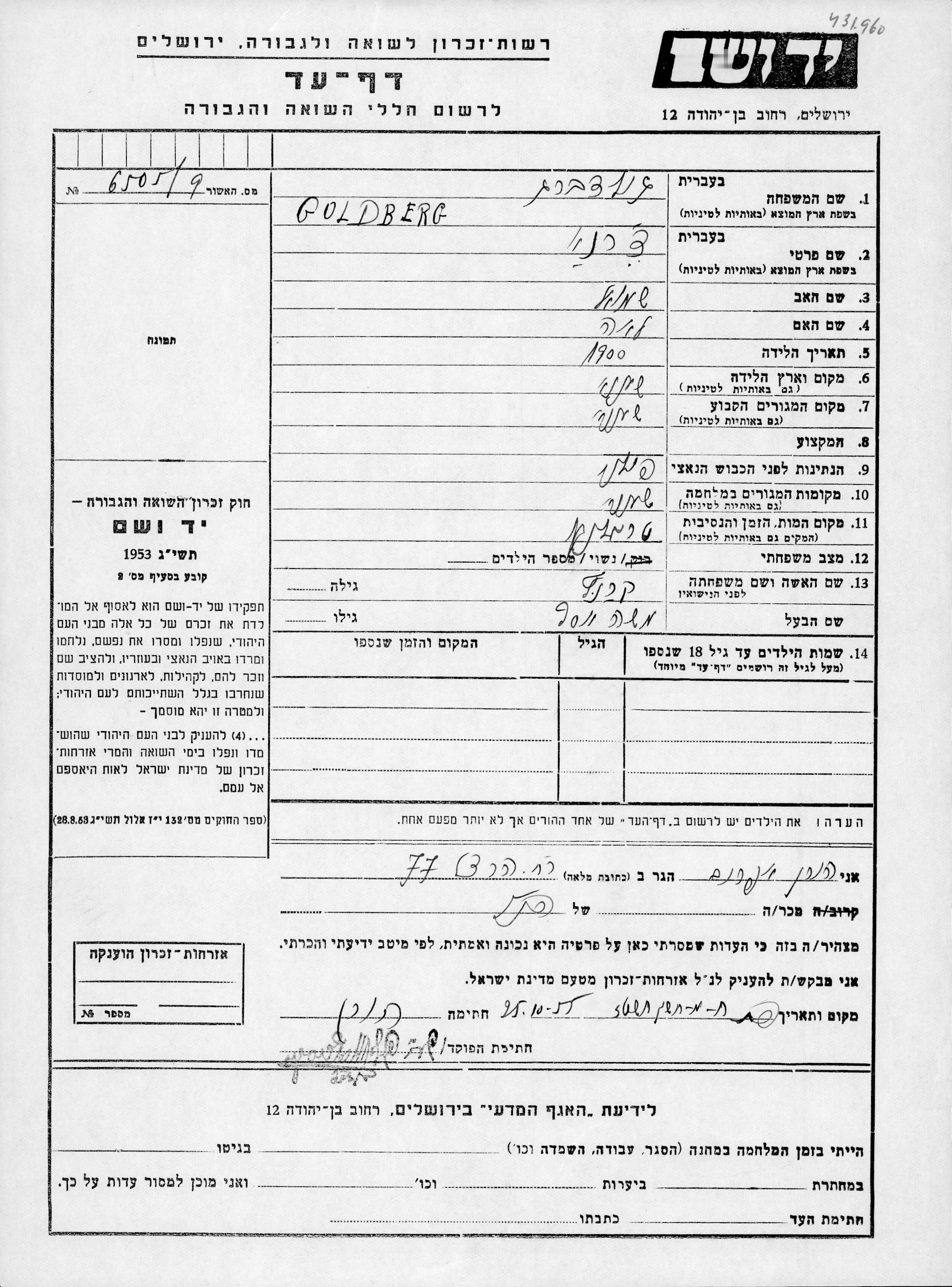 Yad Vashem - Pages of Testimony Names Memorial Collection