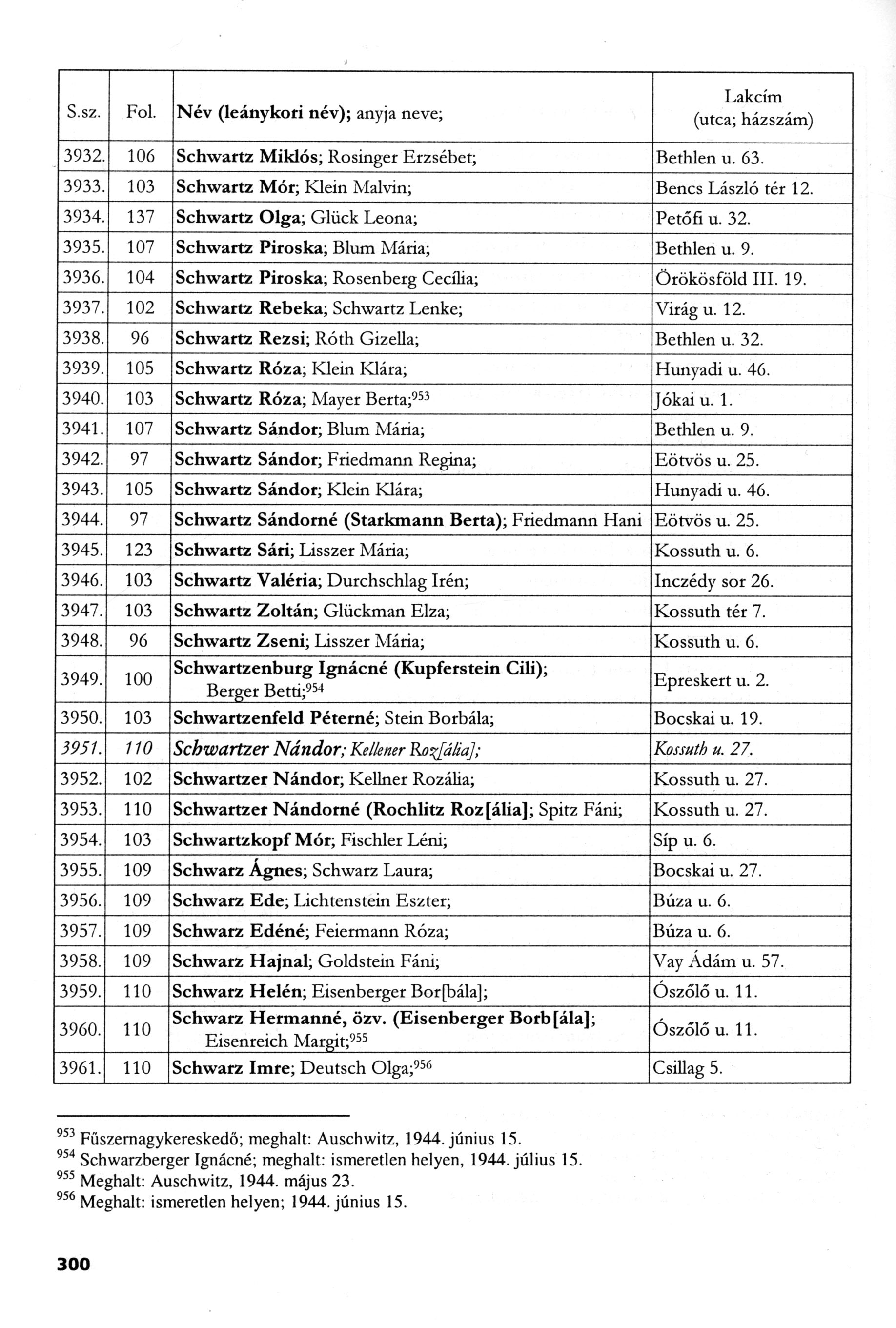 Schwartzkopf Mór Nyiregyhaza, Hongrie Liste de personnes persécutées