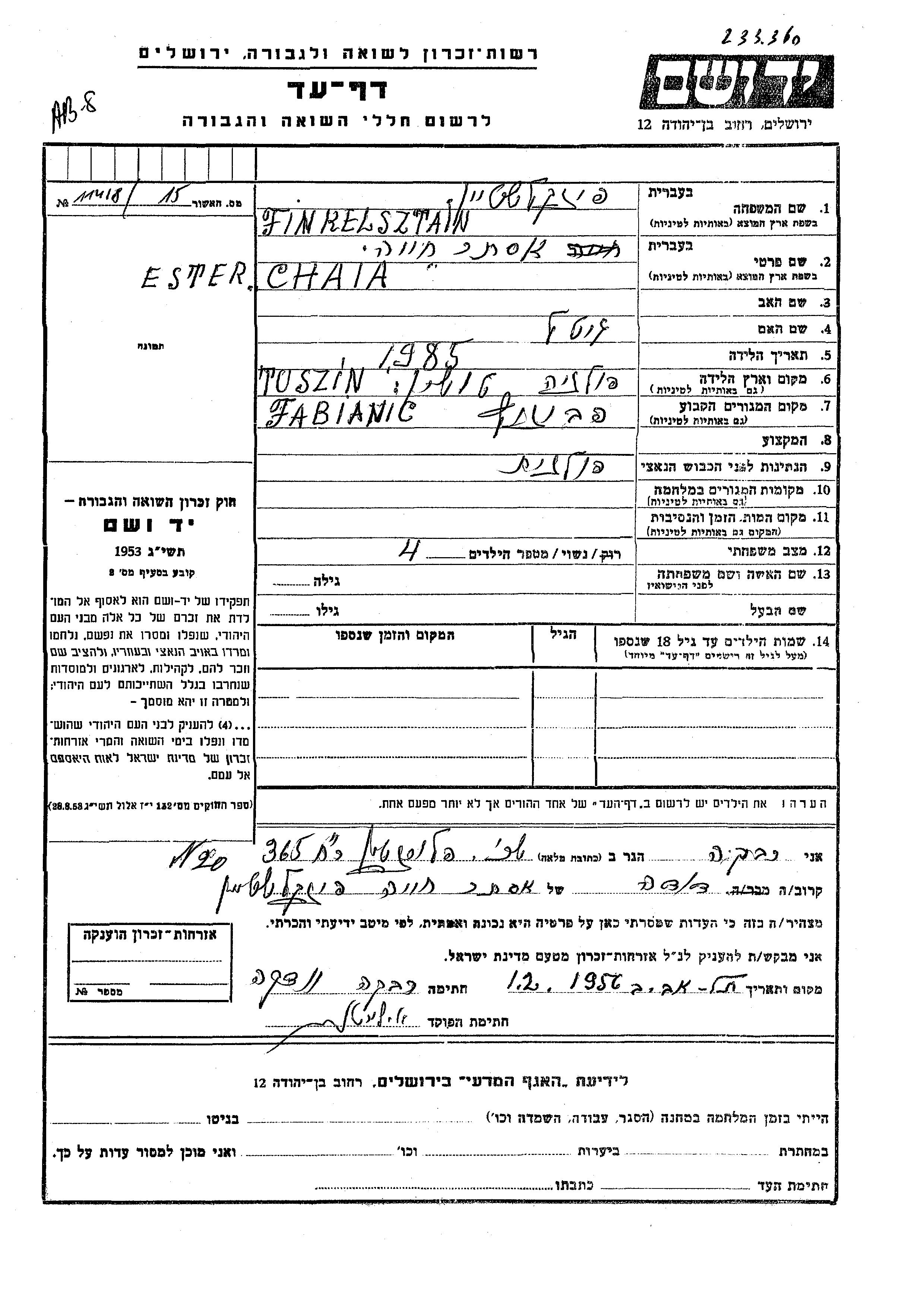 Yad Vashem - Pages of Testimony Names Memorial Collection