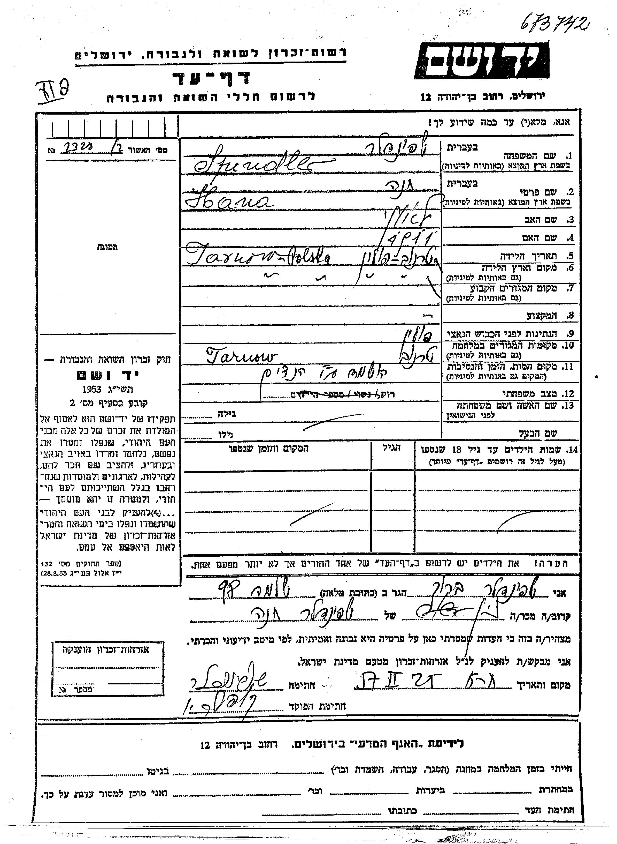 Yad Vashem - Pages of Testimony Names Memorial Collection