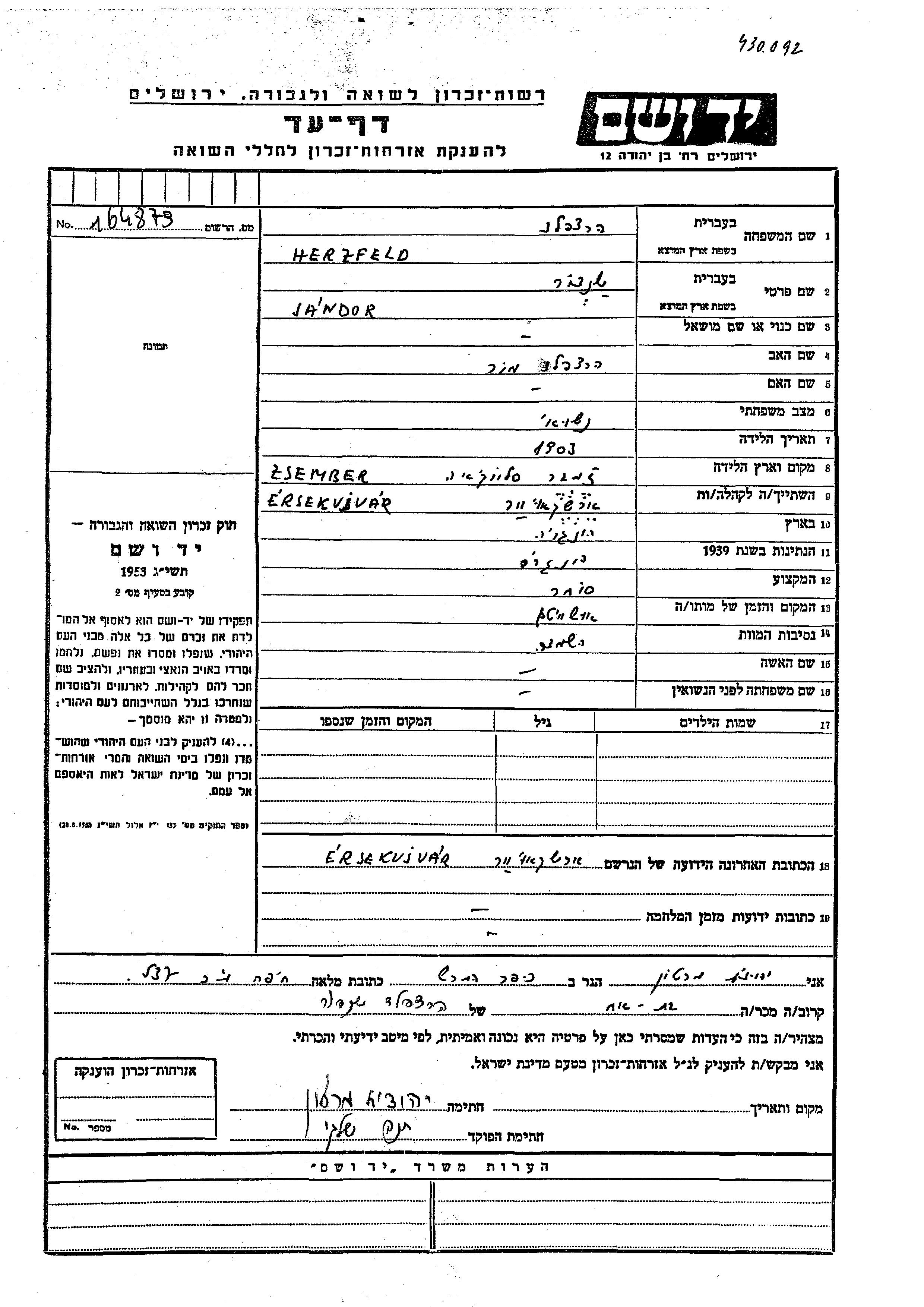 Yad Vashem - Pages of Testimony Names Memorial Collection