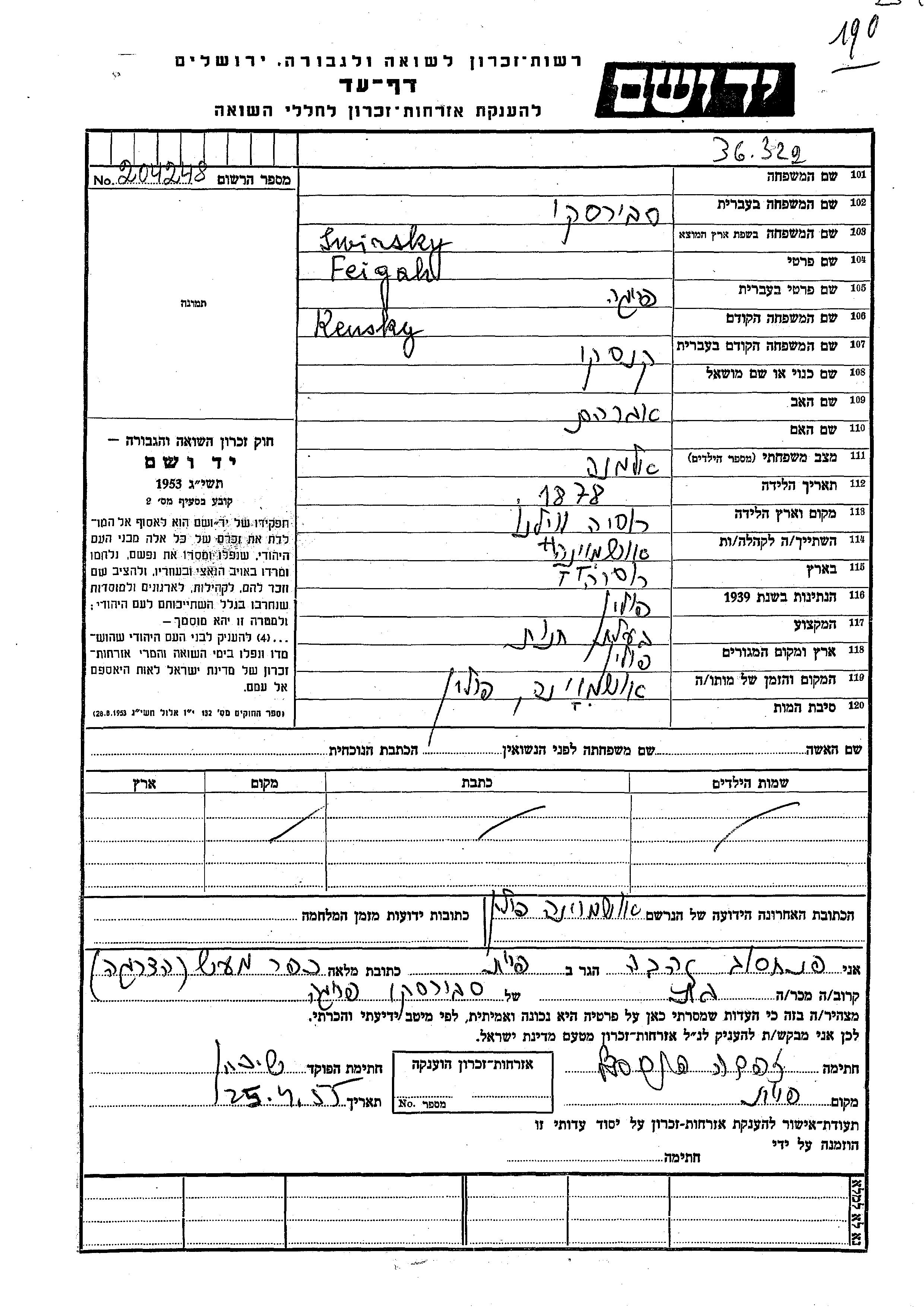 Yad Vashem - Pages of Testimony Names Memorial Collection
