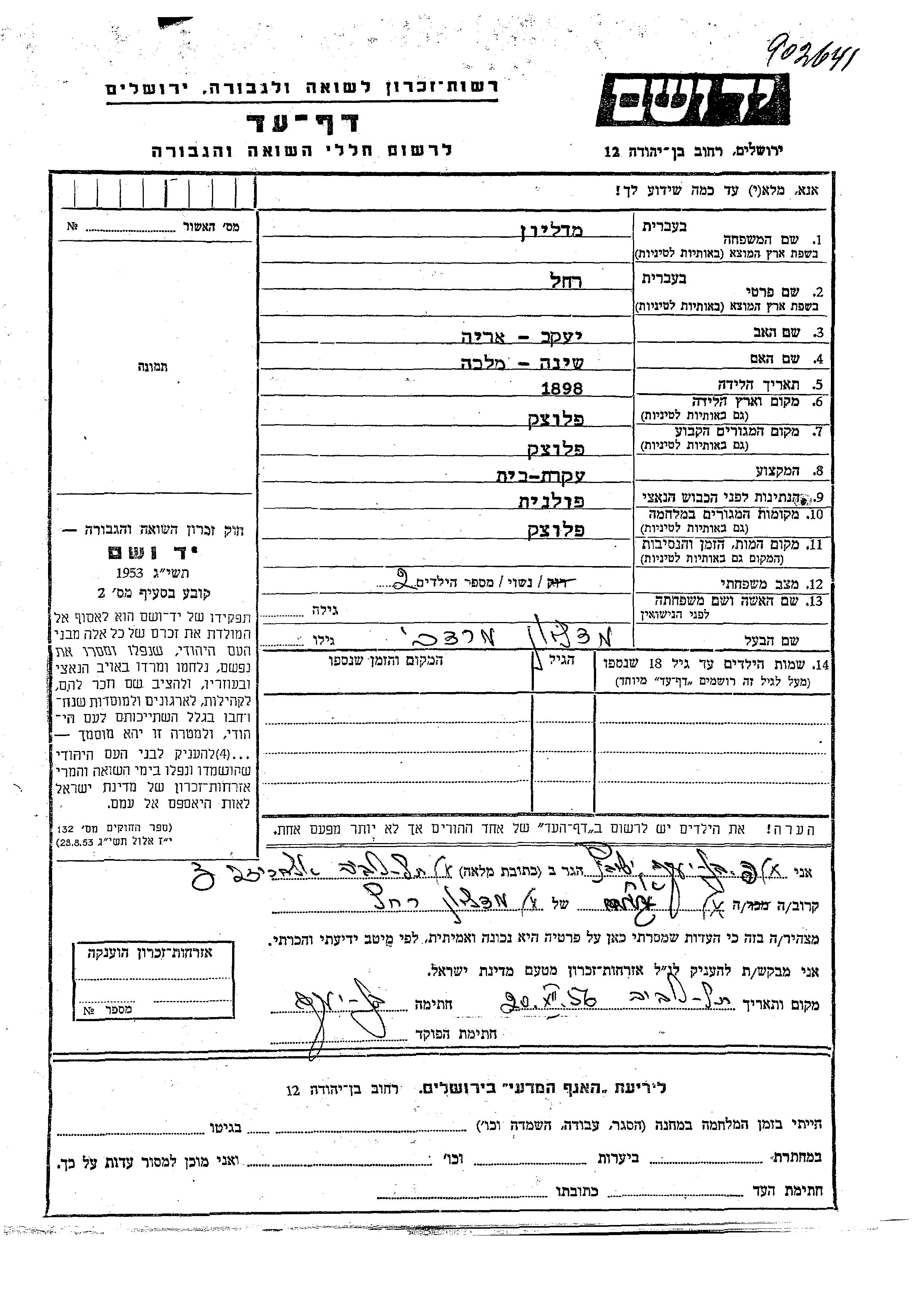 Yad Vashem - Pages of Testimony Names Memorial Collection