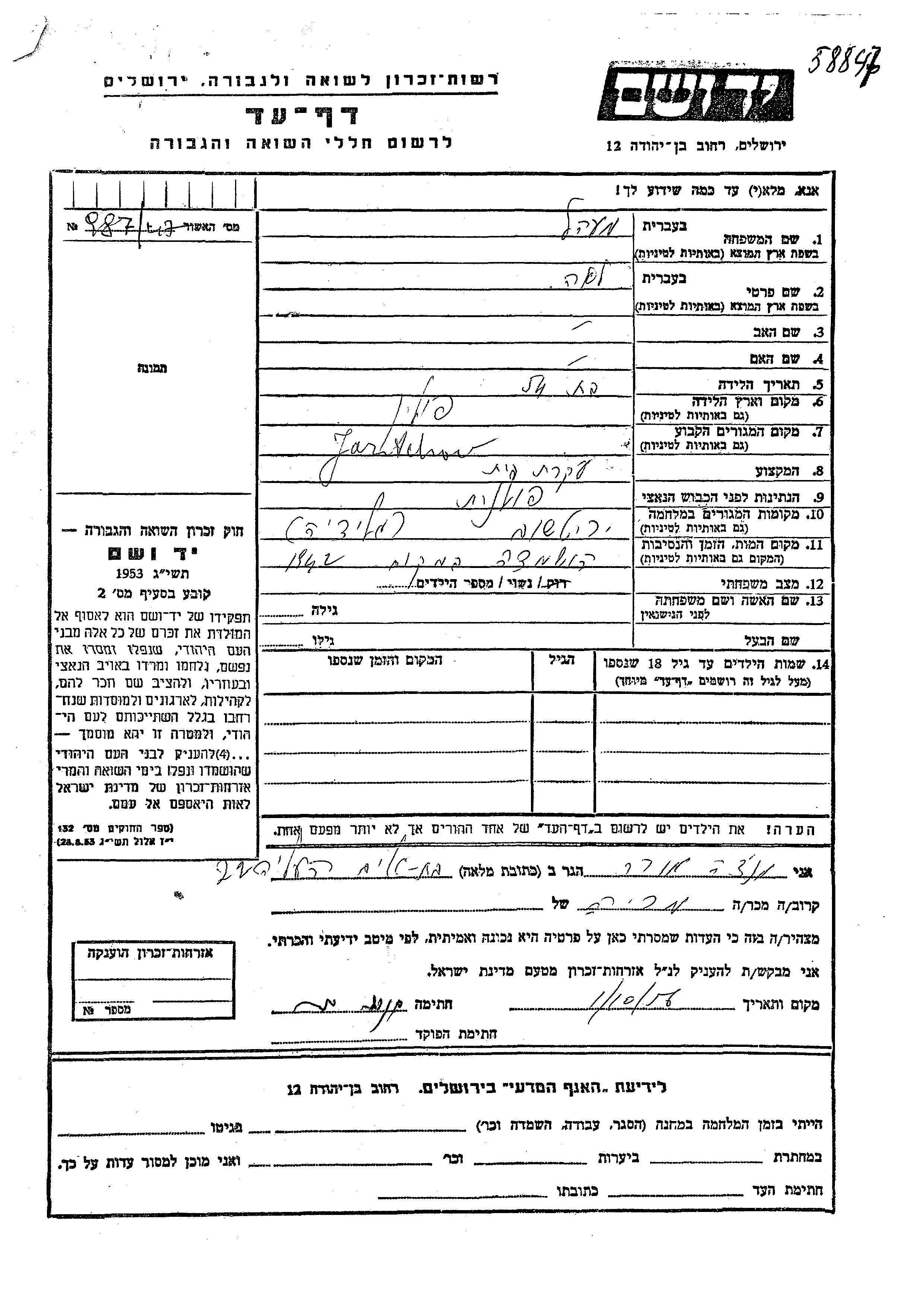 Yad Vashem - Pages of Testimony Names Memorial Collection