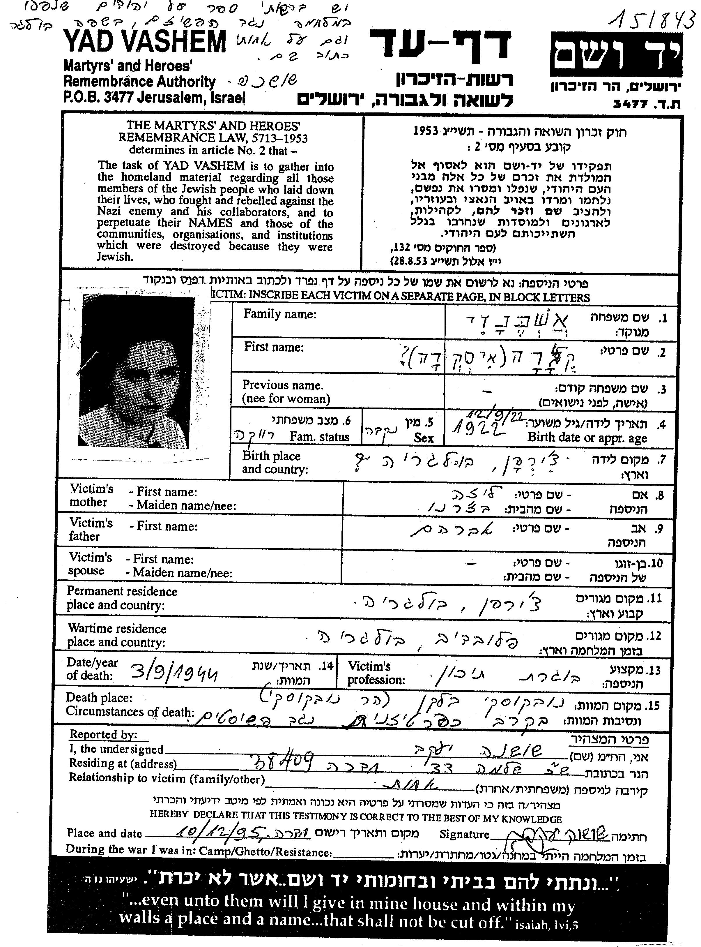 Yad Vashem - Pages of Testimony Names Memorial Collection