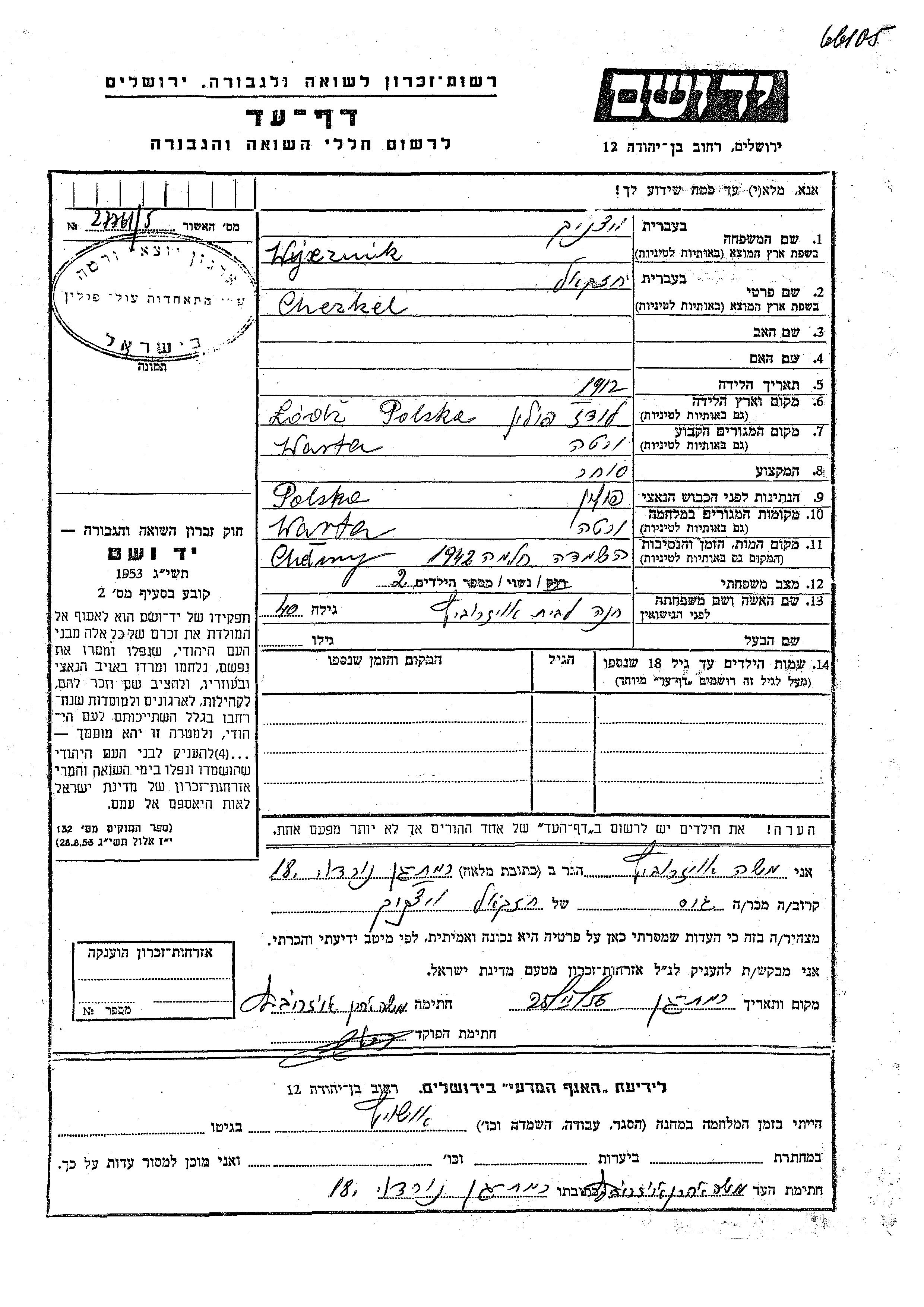Chezkel a été assassiné pendant la Shoah. Lieu de la mort: Chelm, Pologne en 1942.