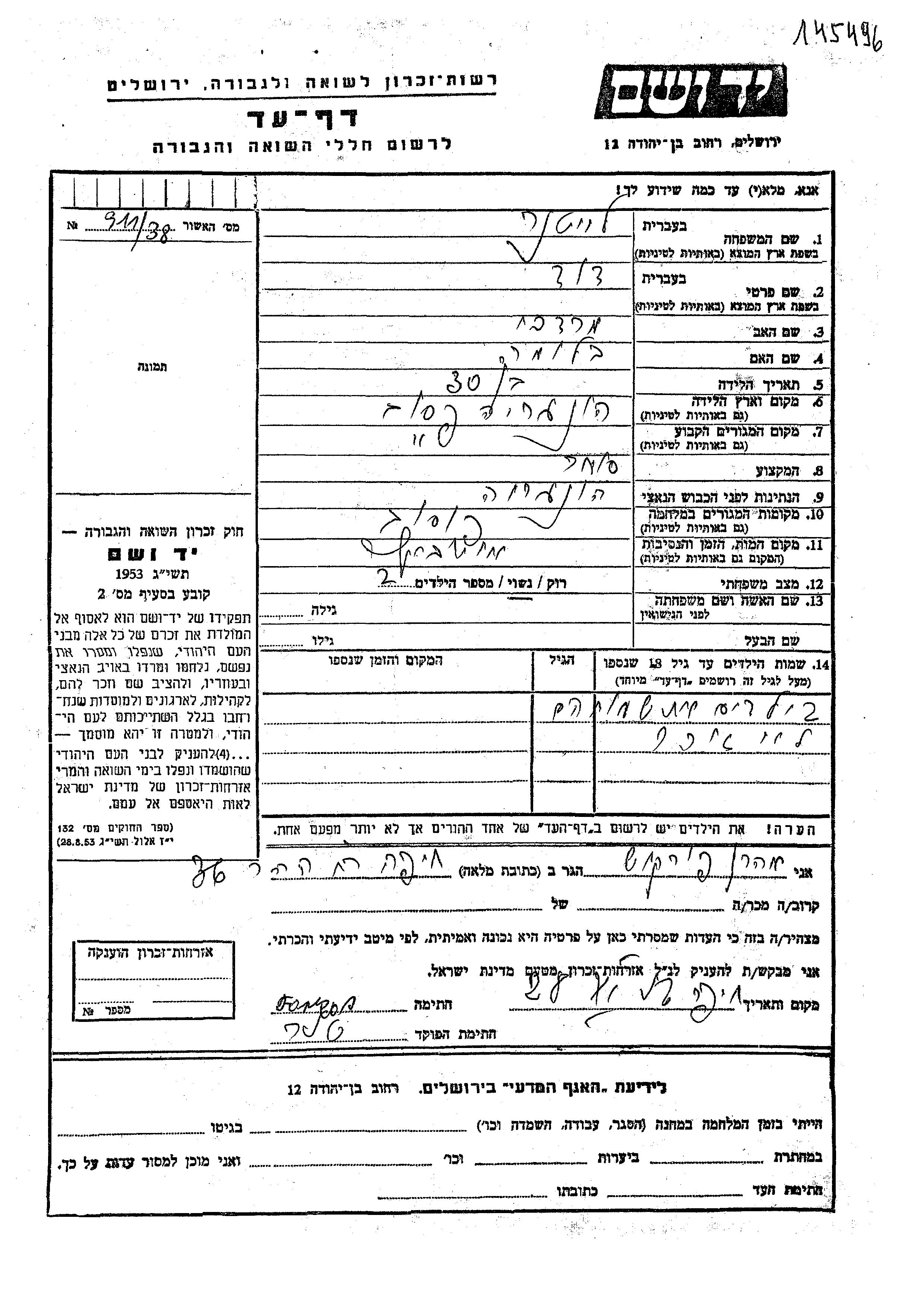 Yad Vashem - Pages of Testimony Names Memorial Collection