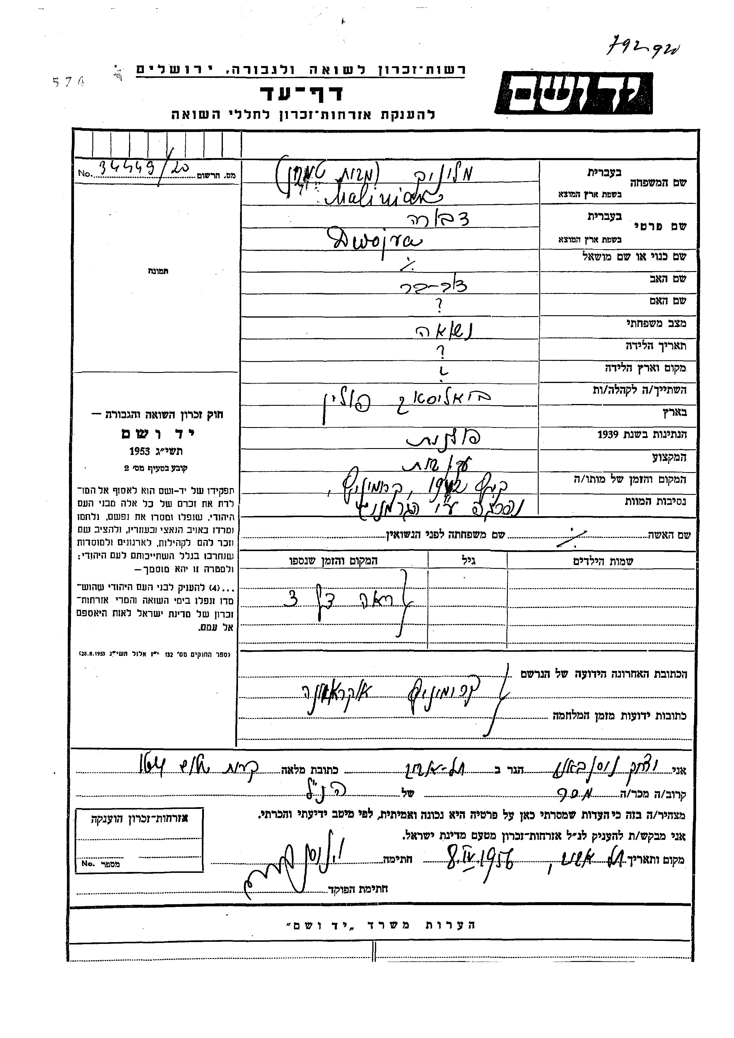 Yad Vashem - Pages of Testimony Names Memorial Collection