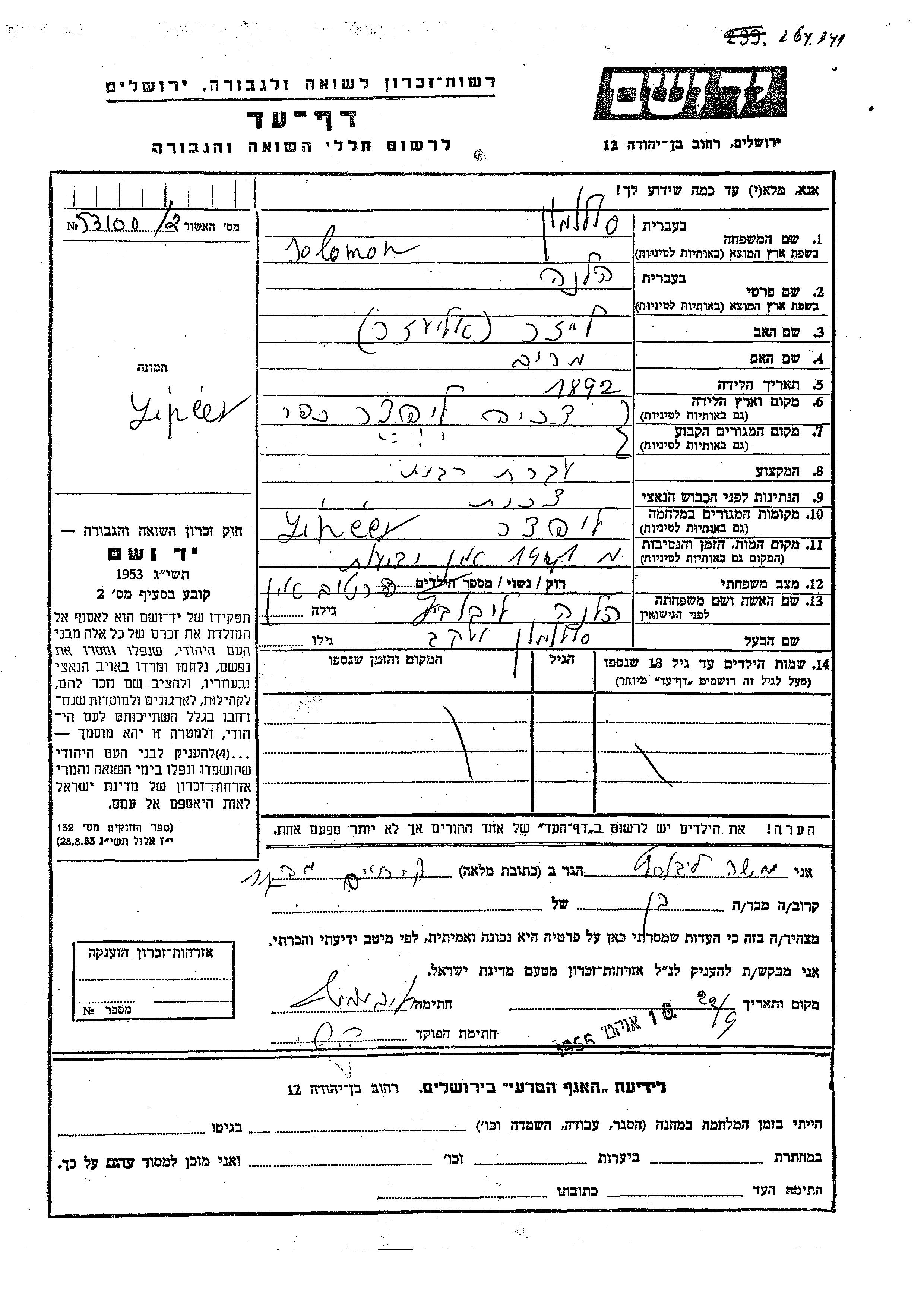 Yad Vashem - Pages of Testimony Names Memorial Collection