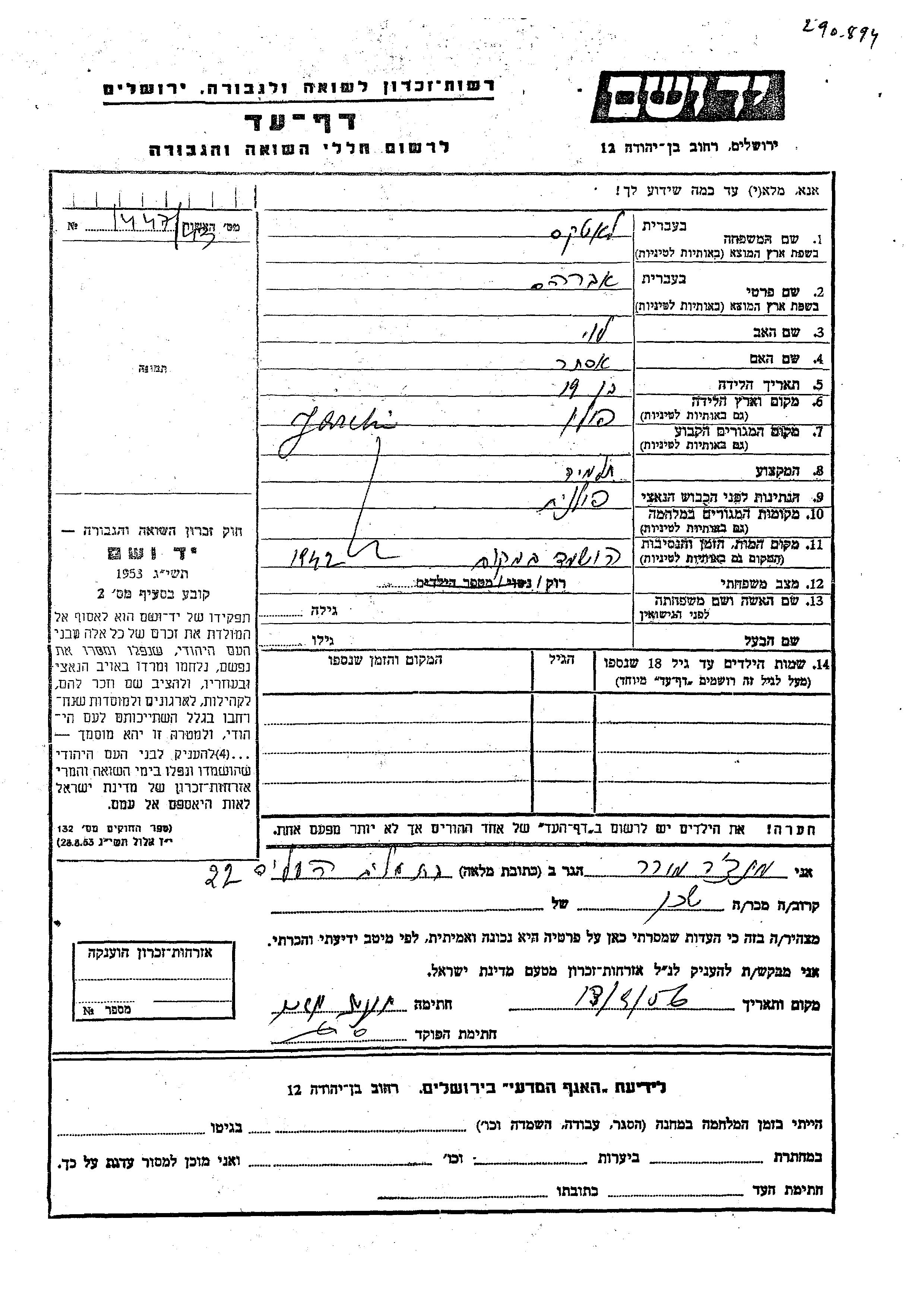 Latkes Avraham endroit inconnu, Feuille de témoignage