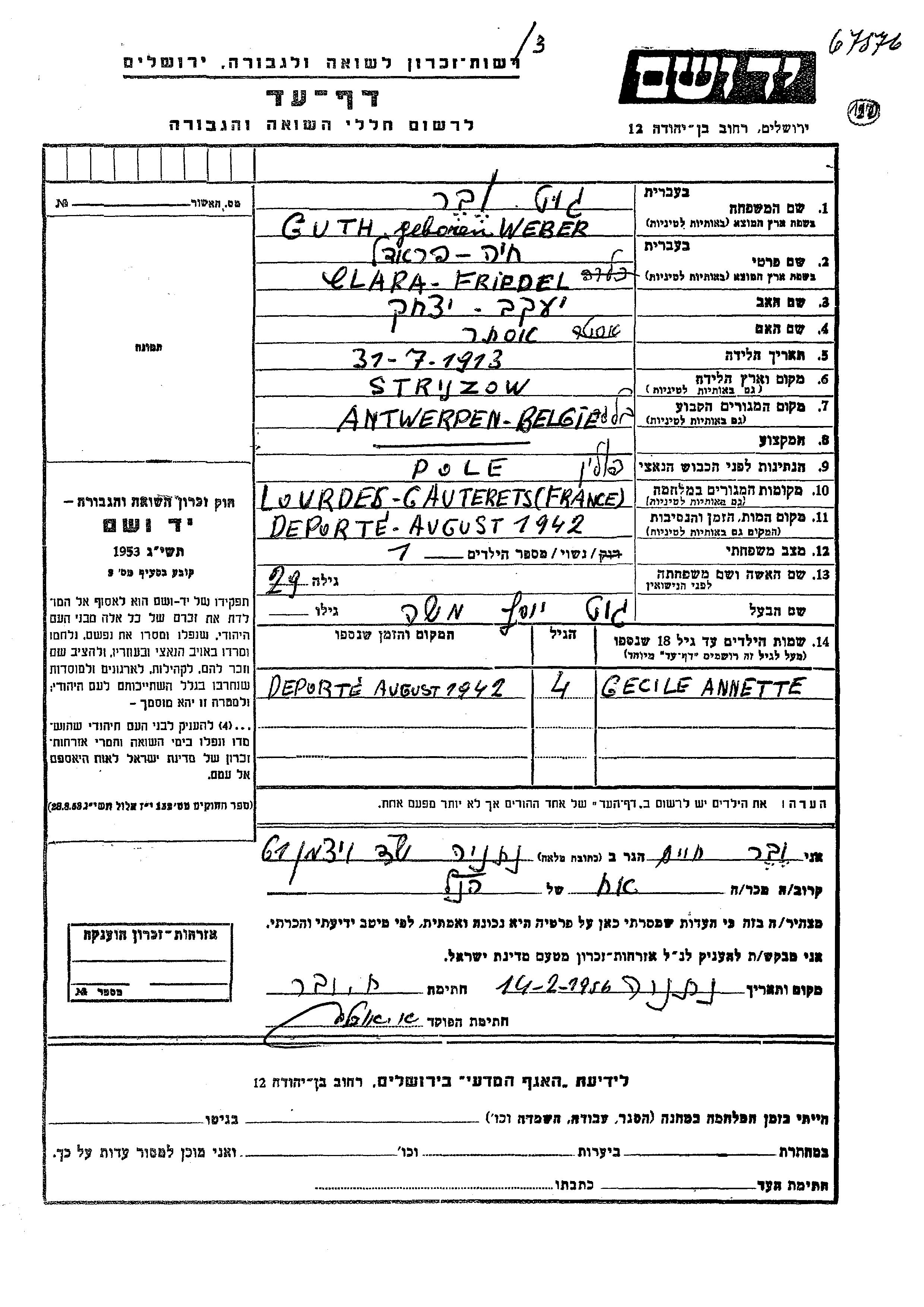 Yad Vashem - Pages of Testimony Names Memorial Collection