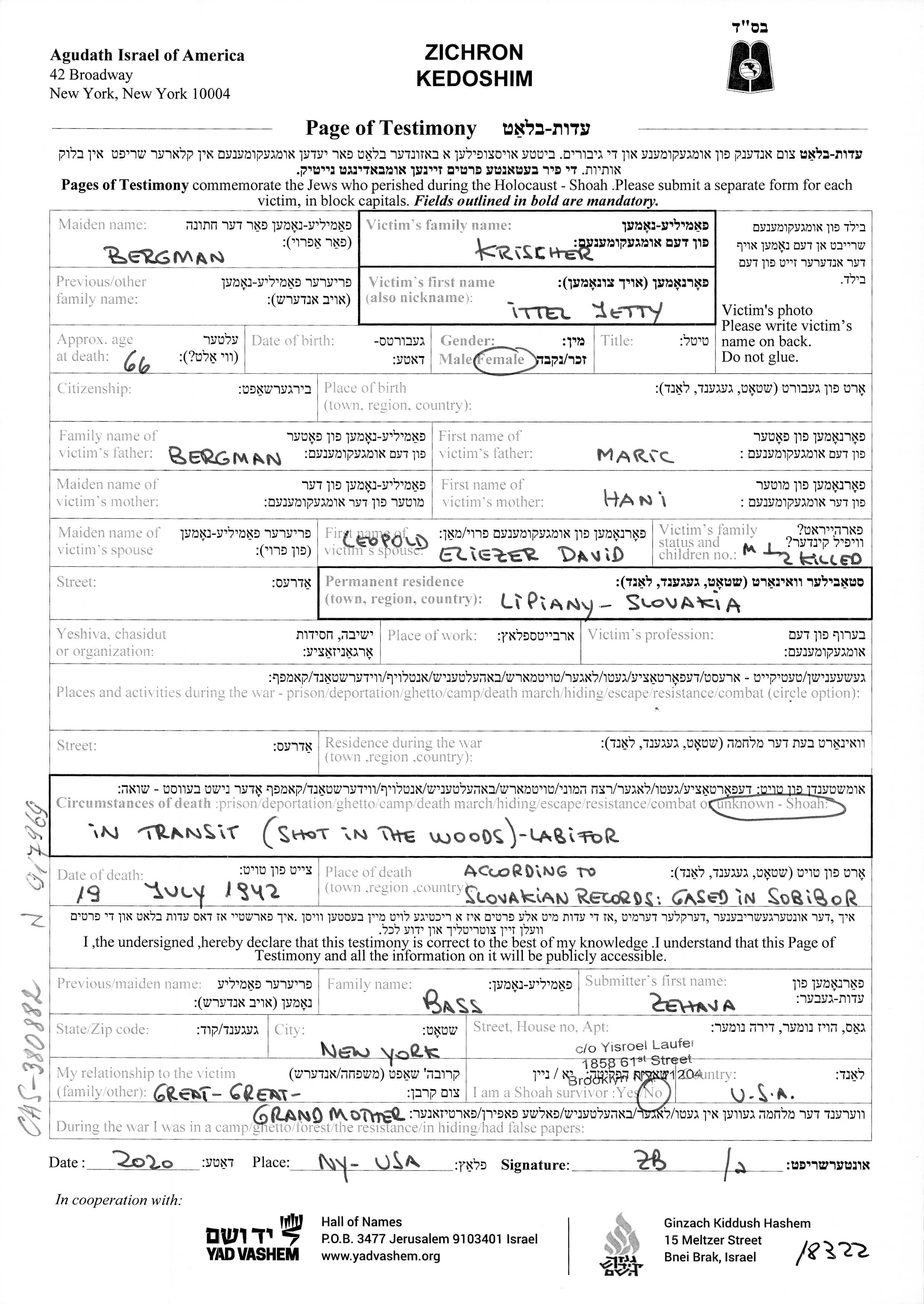 Yad Vashem - Pages of Testimony Names Memorial Collection