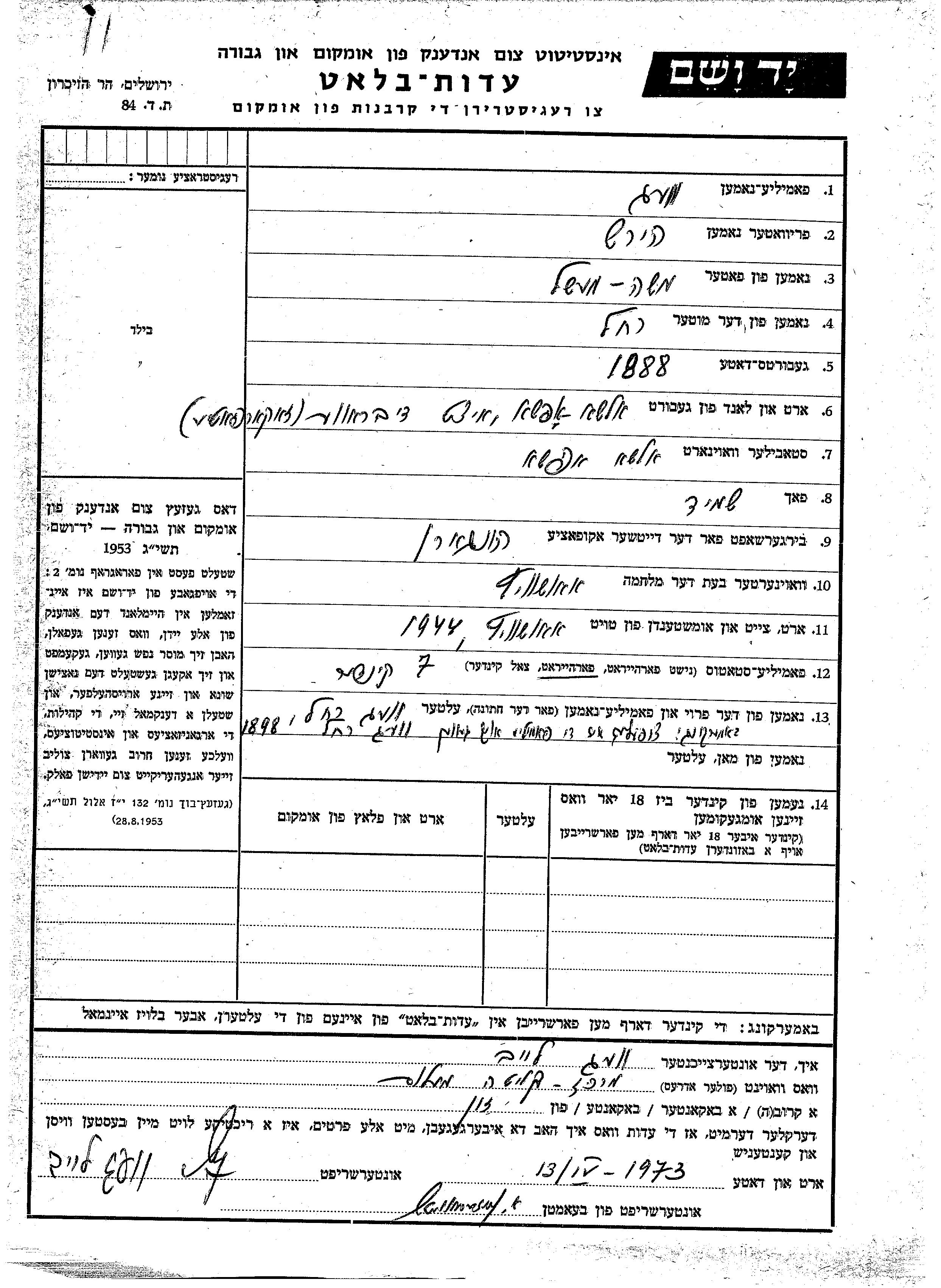 Yad Vashem - Pages of Testimony Names Memorial Collection