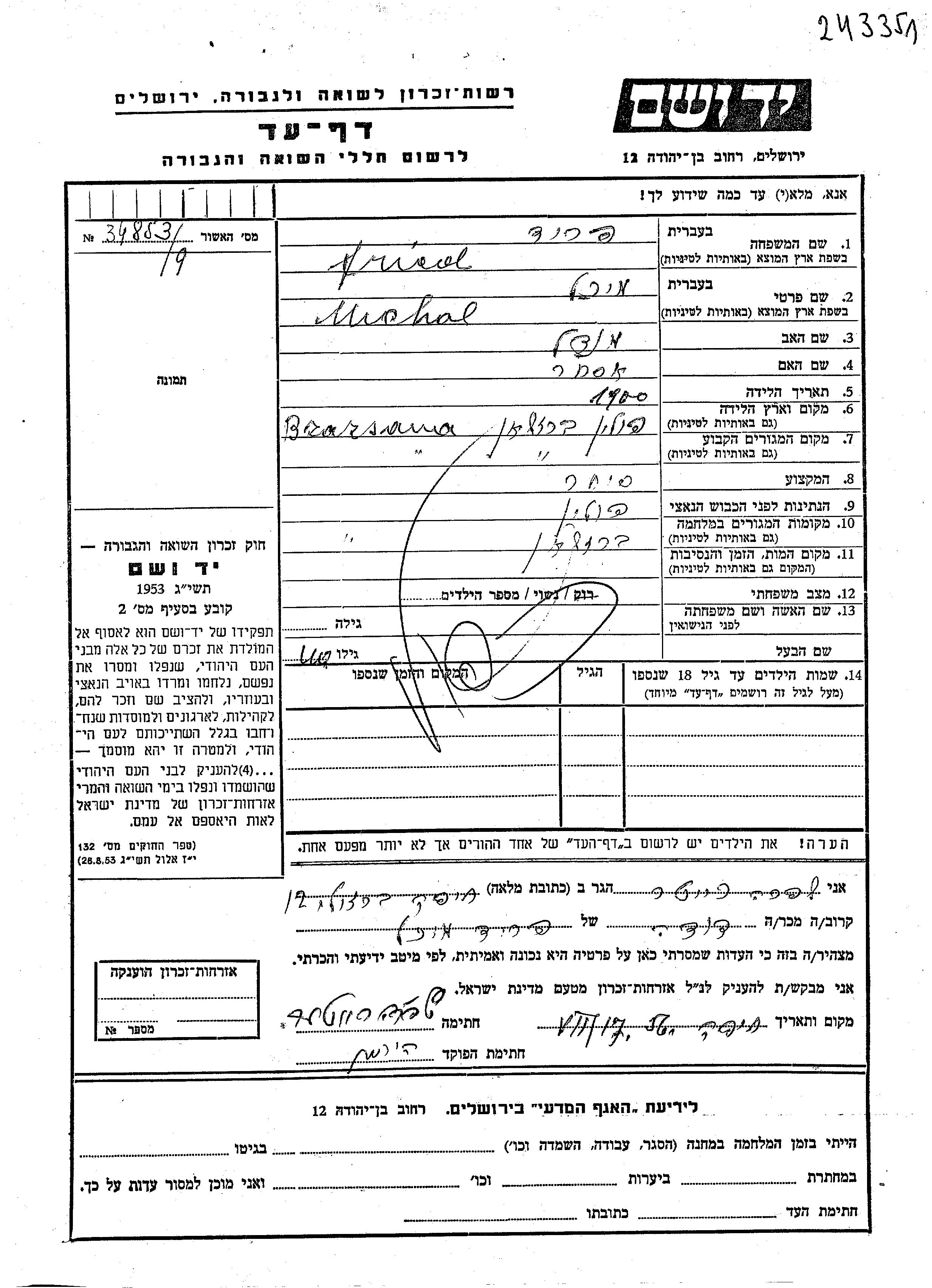 Yad Vashem - Pages of Testimony Names Memorial Collection