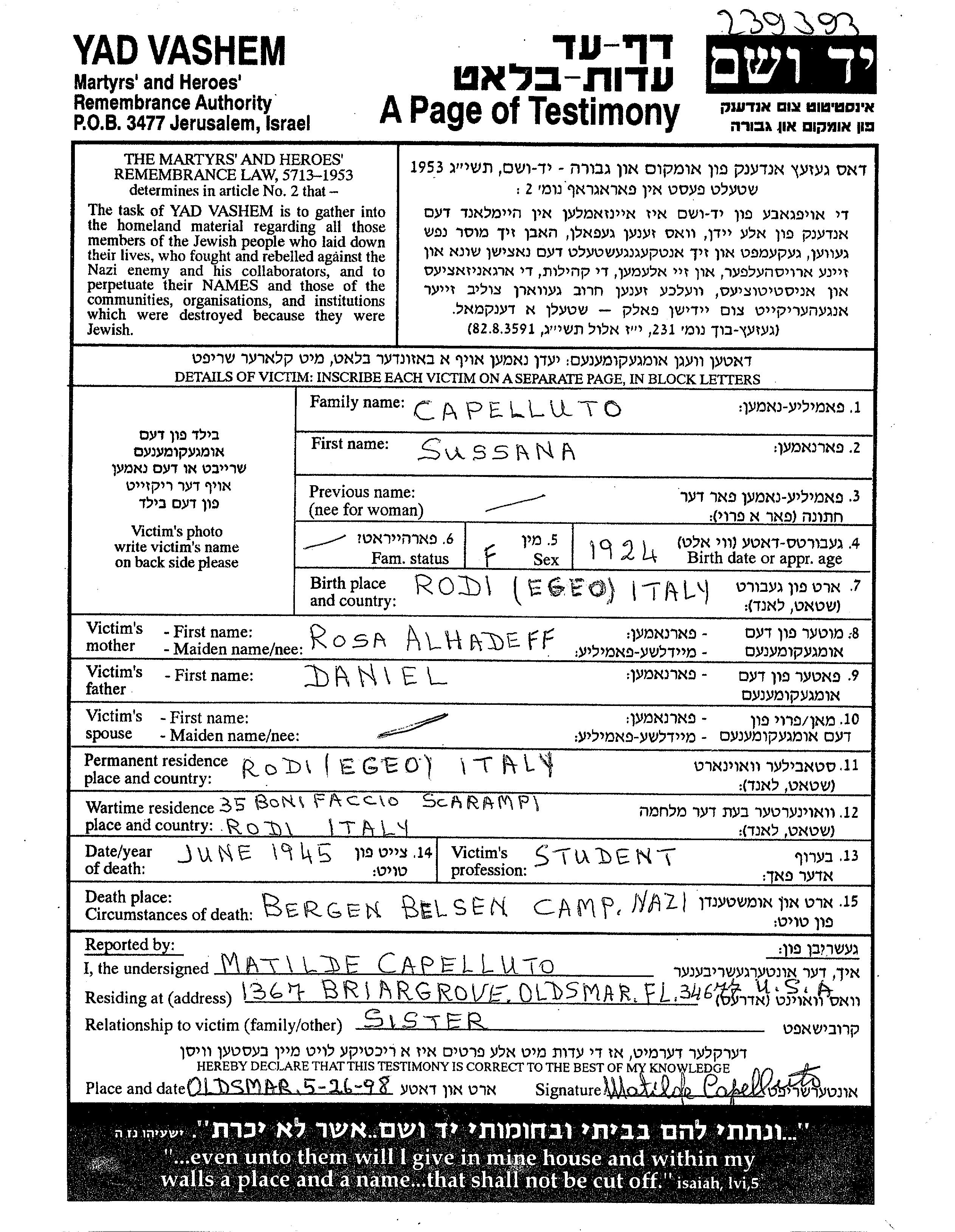Yad Vashem - Pages of Testimony Names Memorial Collection