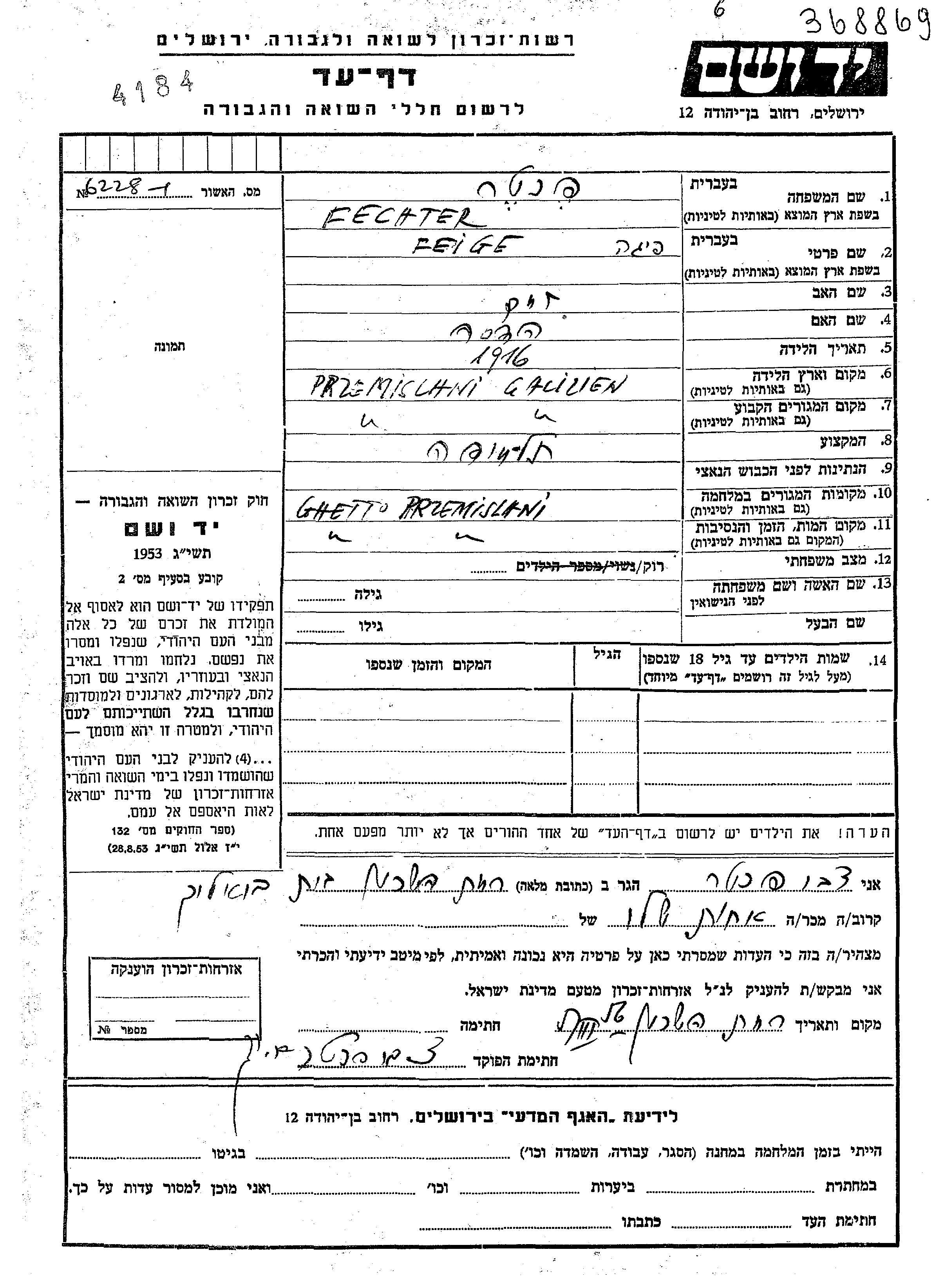 Yad Vashem - Pages of Testimony Names Memorial Collection