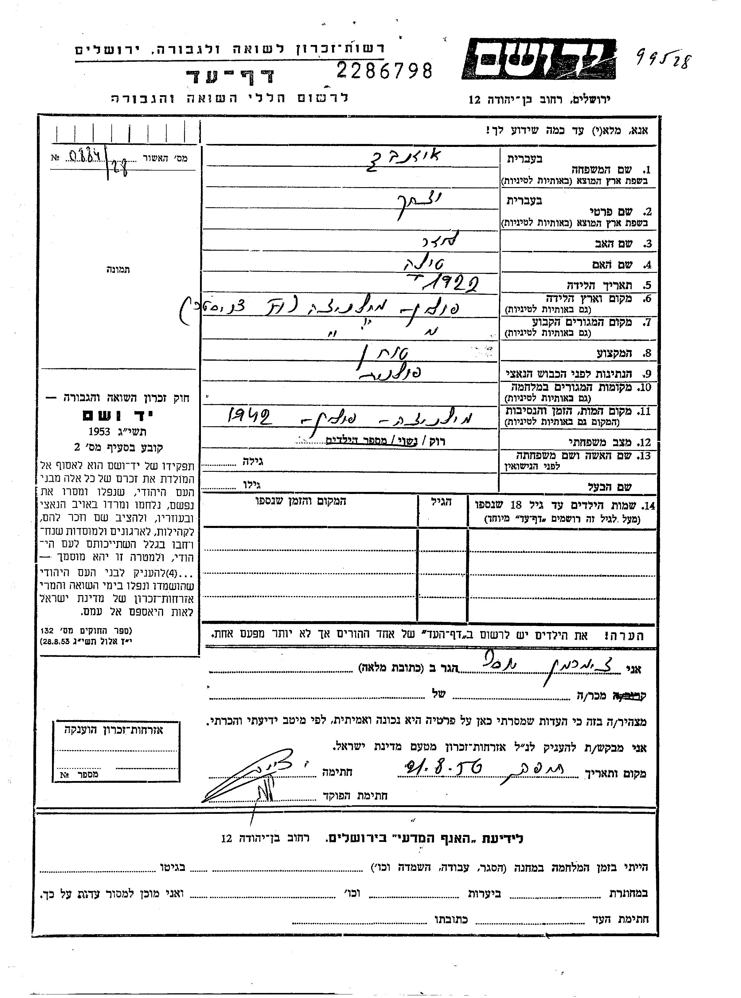 Eizenberg | Yitzkhak | 1921 | Mielnica, Pologne | Feuille de témoignage |