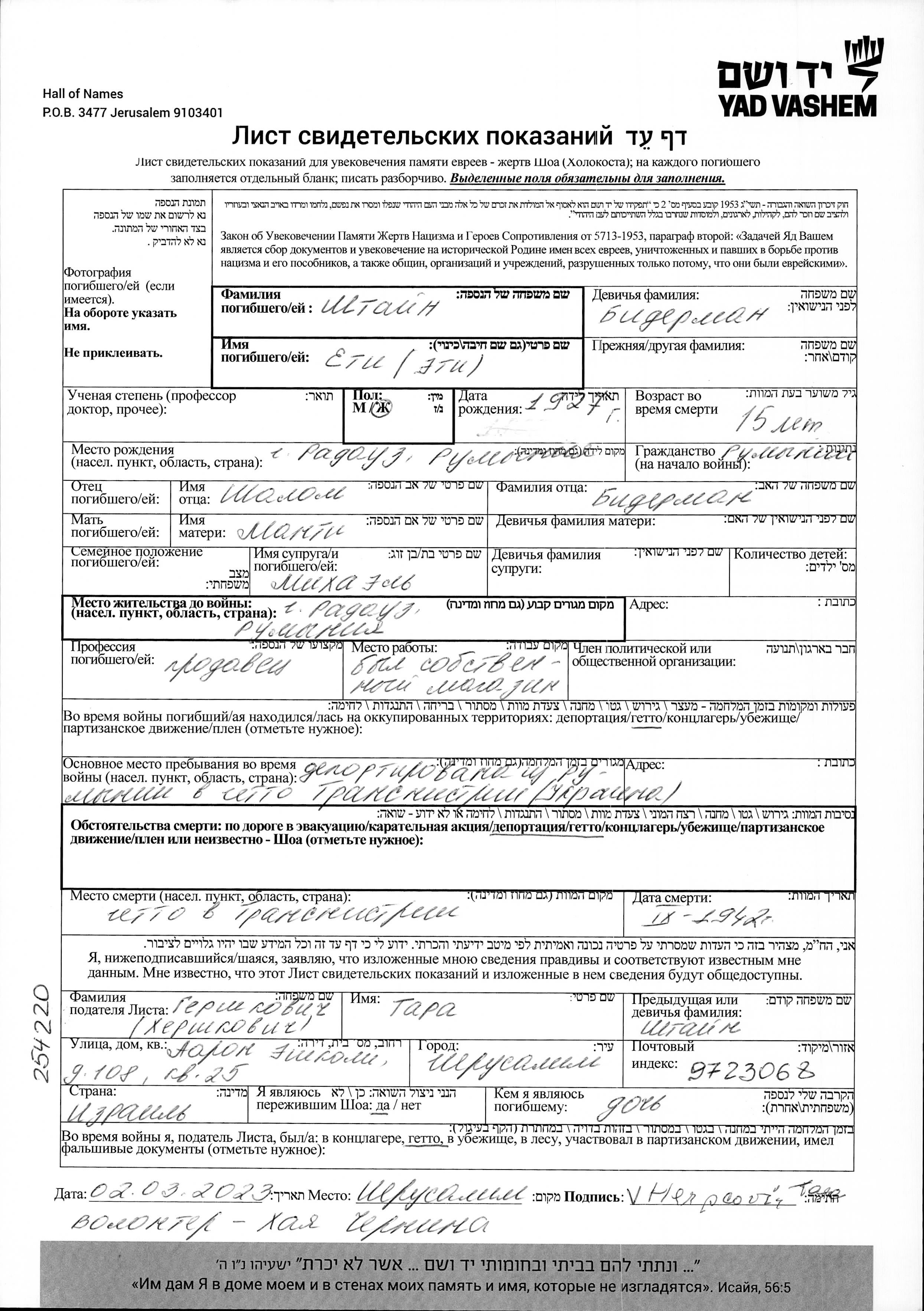 Yad Vashem - Pages of Testimony Names Memorial Collection
