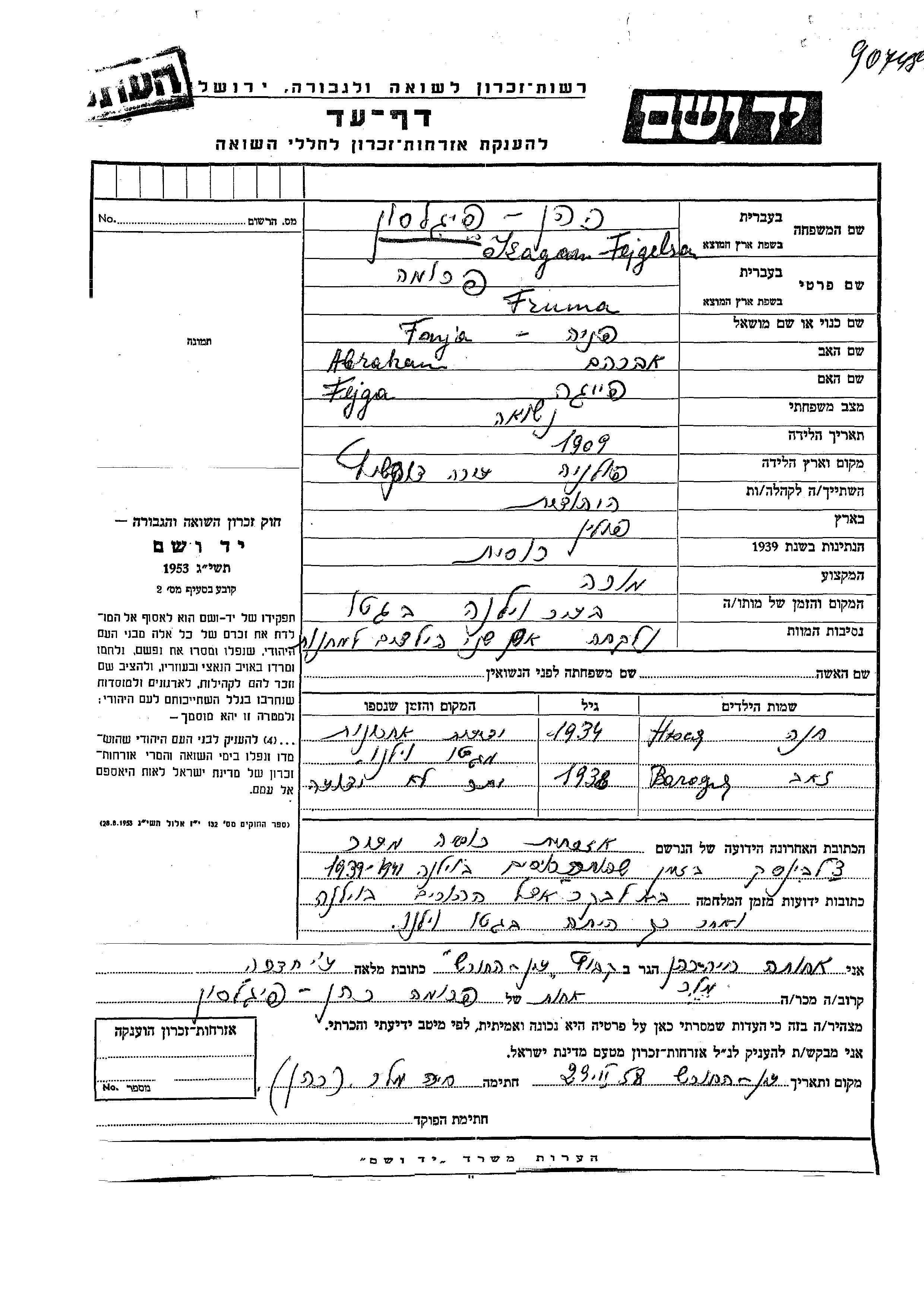 Yad Vashem - Pages of Testimony Names Memorial Collection