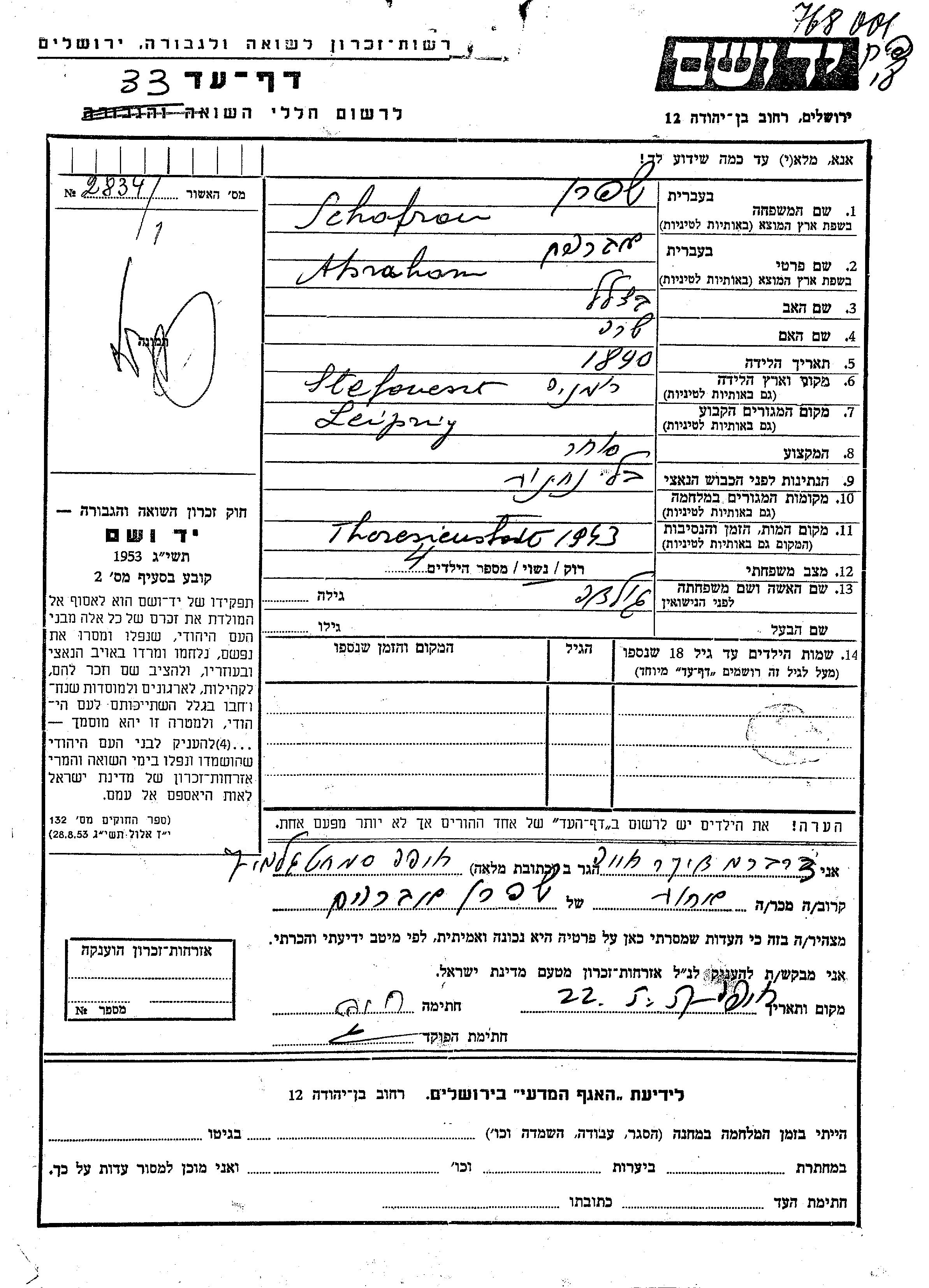 Yad Vashem - Pages of Testimony Names Memorial Collection