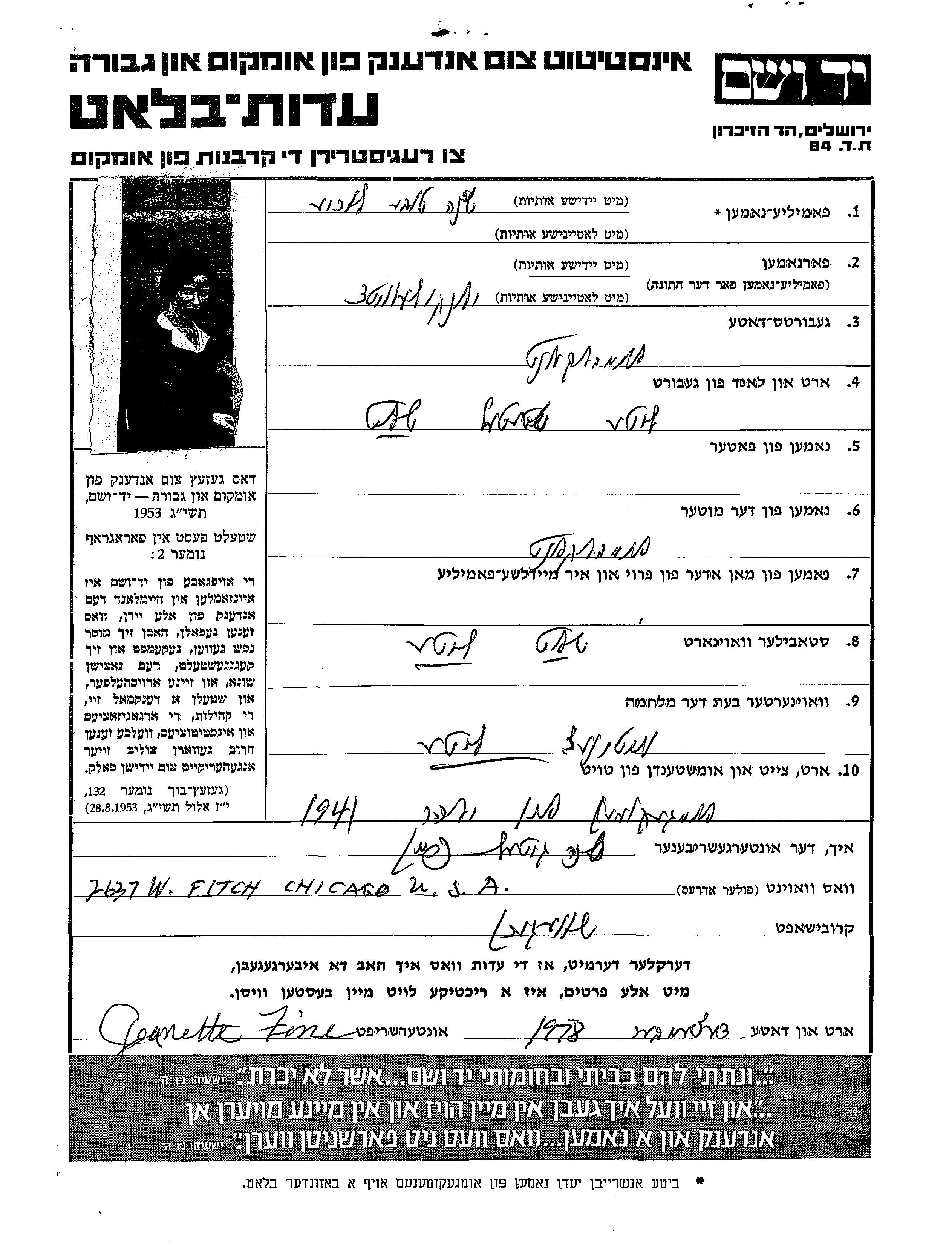 Yad Vashem - Pages of Testimony Names Memorial Collection