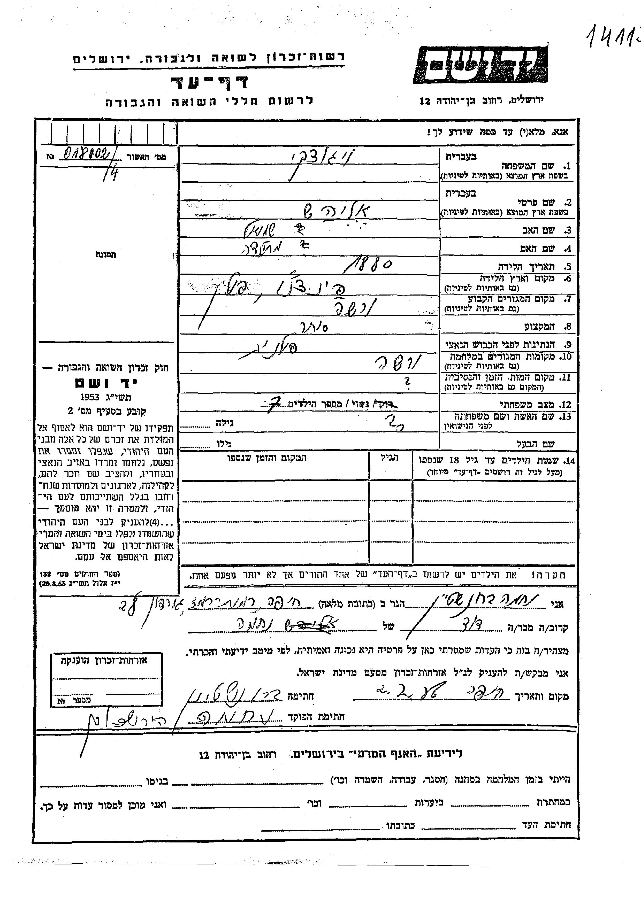 Yad Vashem - Pages of Testimony Names Memorial Collection