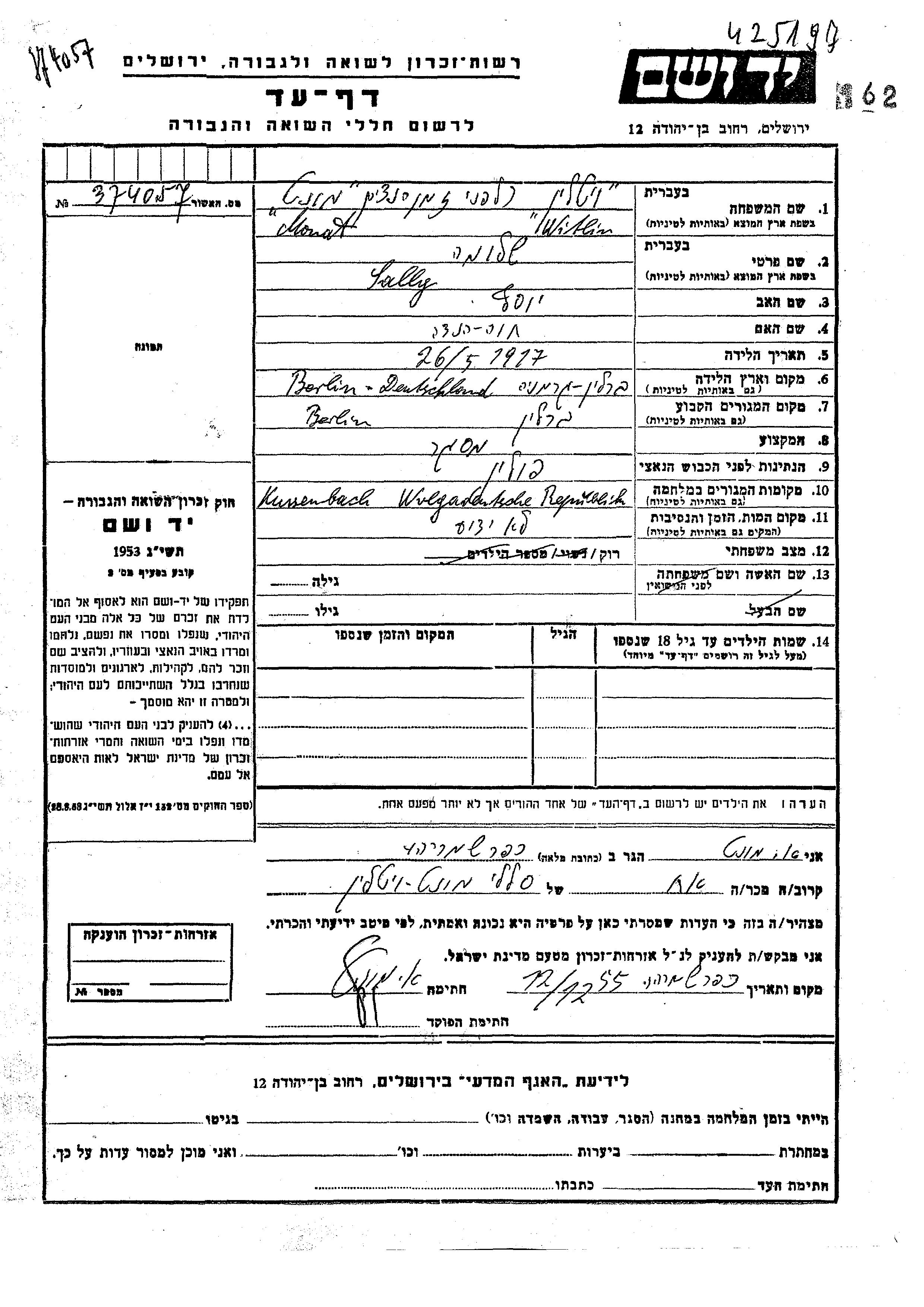 Yad Vashem - Pages of Testimony Names Memorial Collection