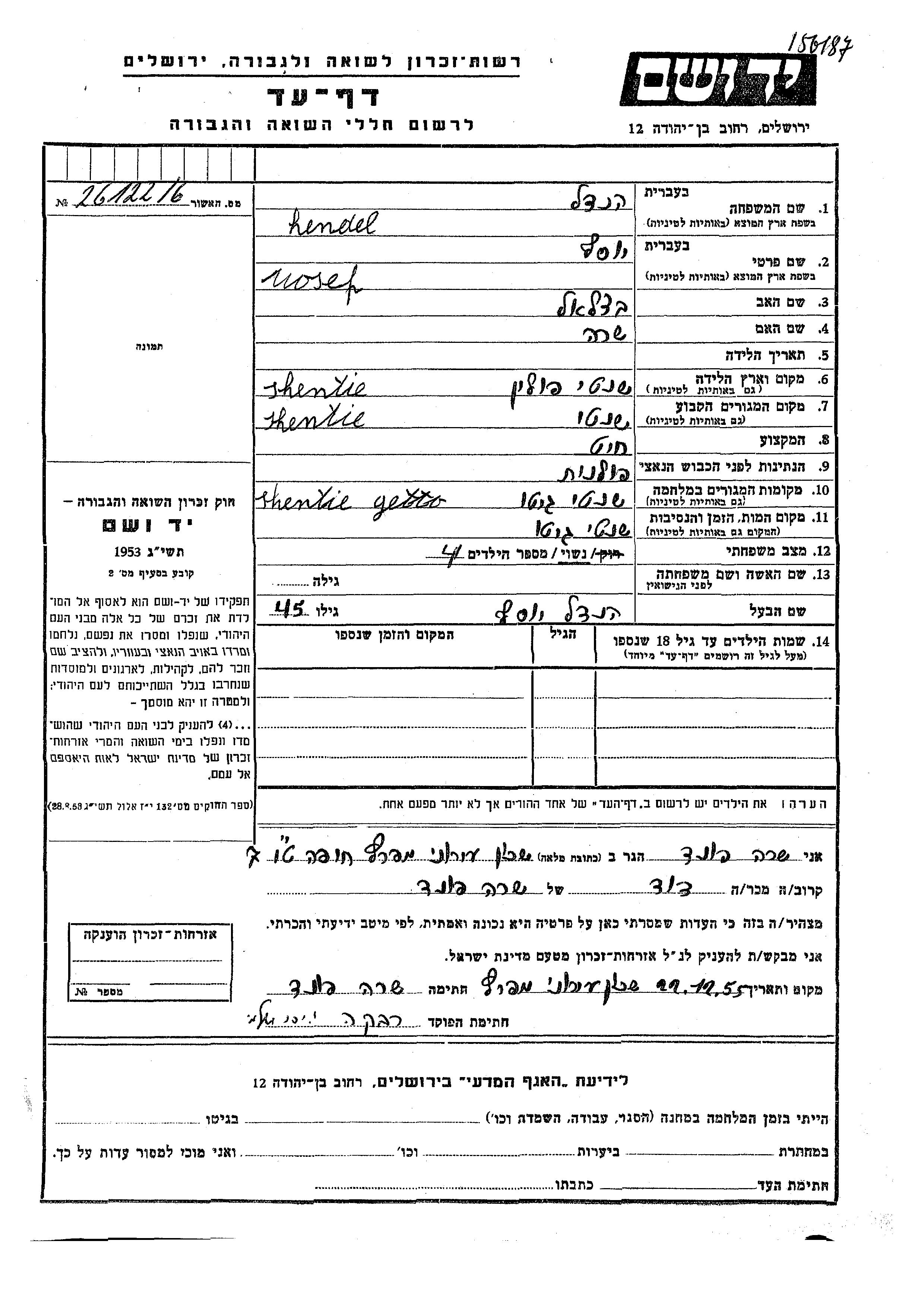 Yad Vashem - Pages of Testimony Names Memorial Collection