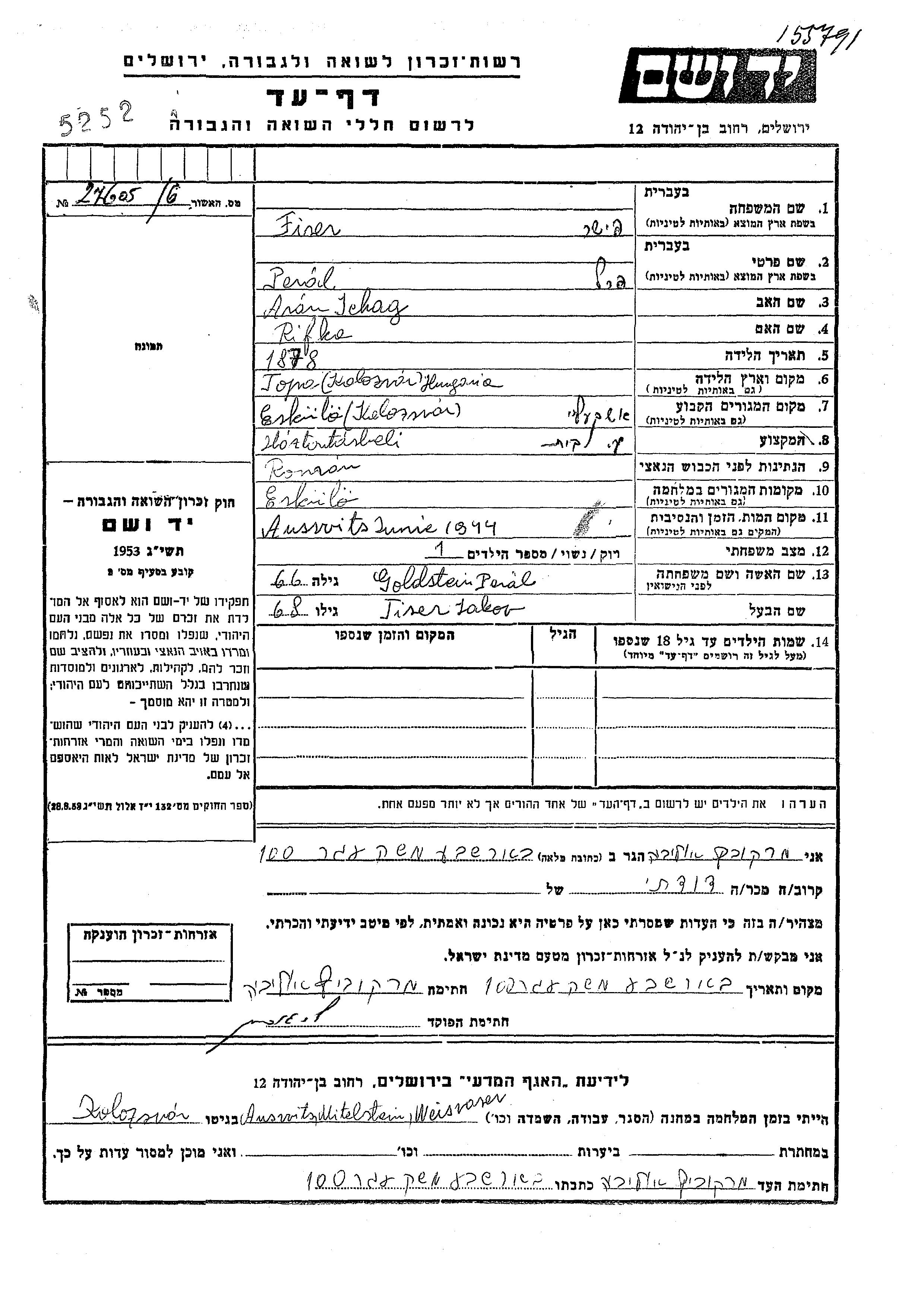Yad Vashem - Pages of Testimony Names Memorial Collection