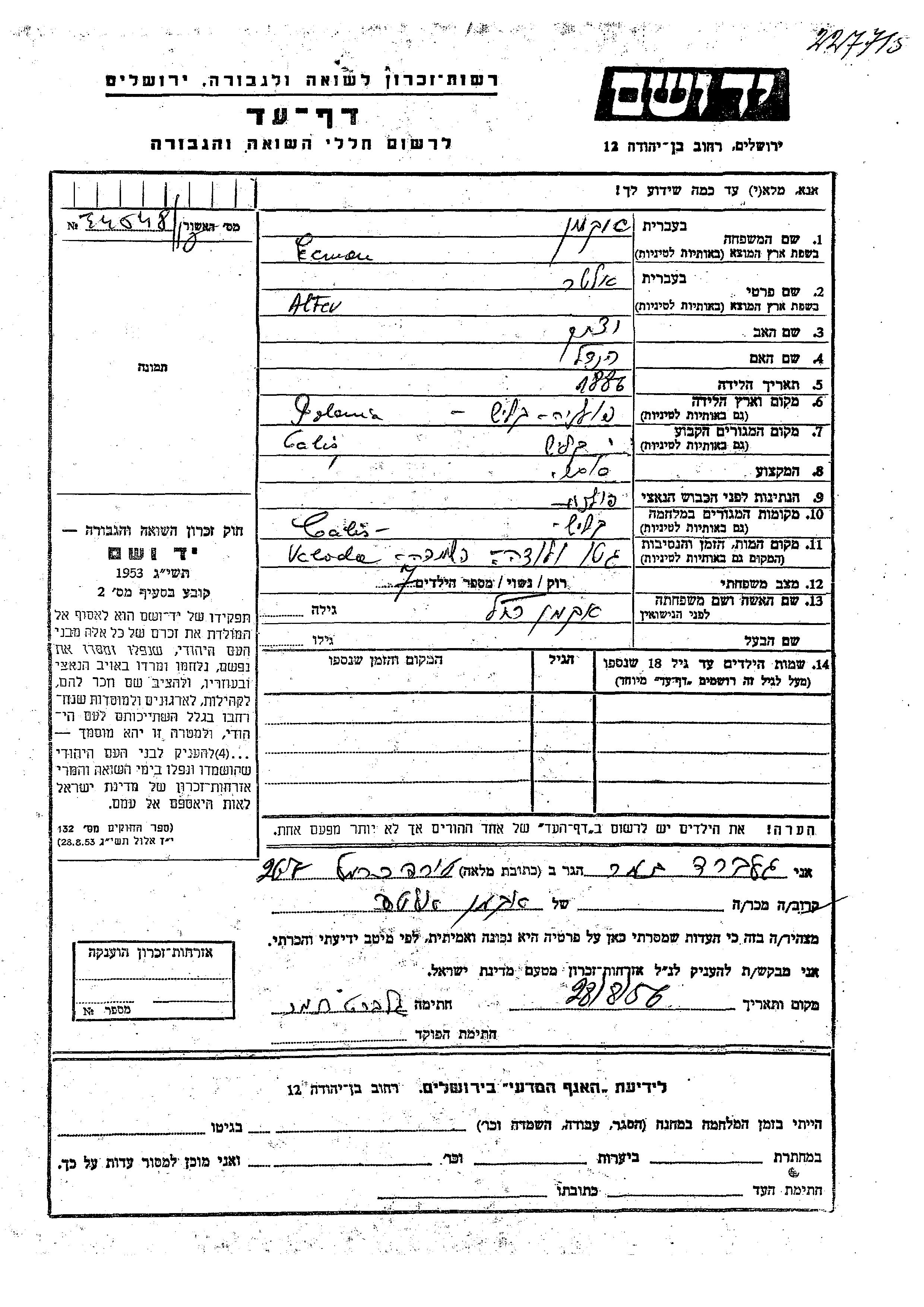 Yad Vashem - Pages of Testimony Names Memorial Collection