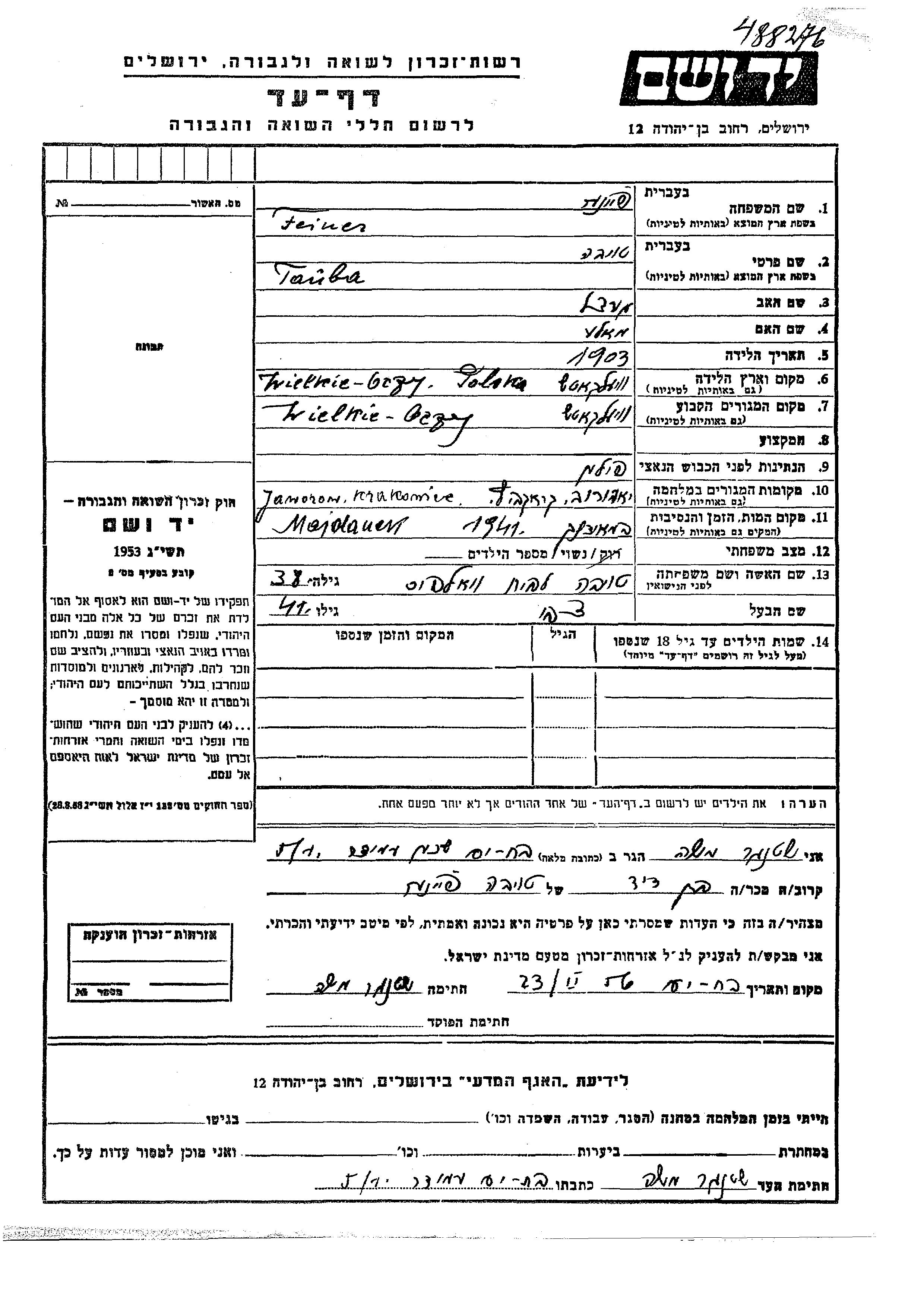Yad Vashem - Pages of Testimony Names Memorial Collection